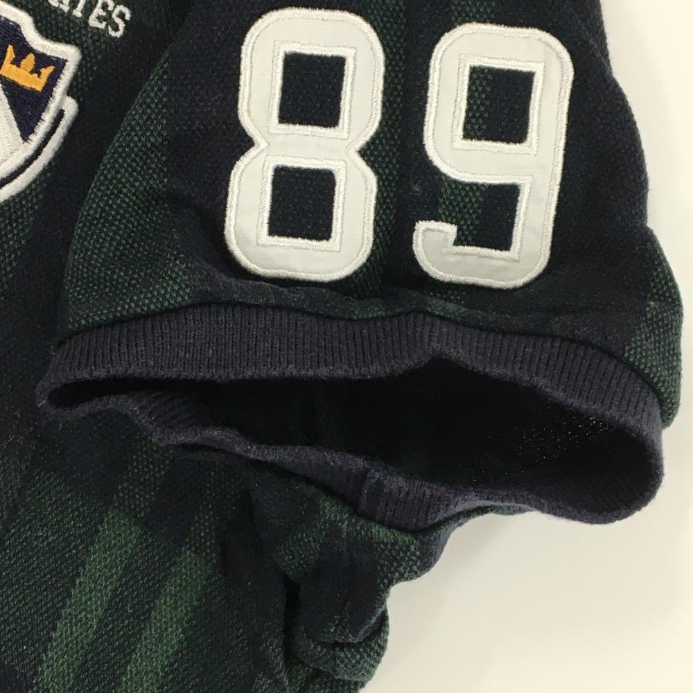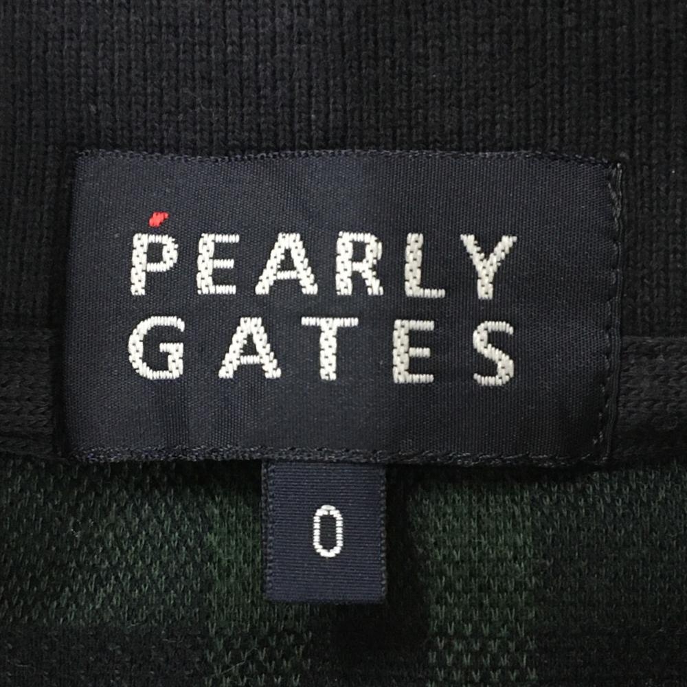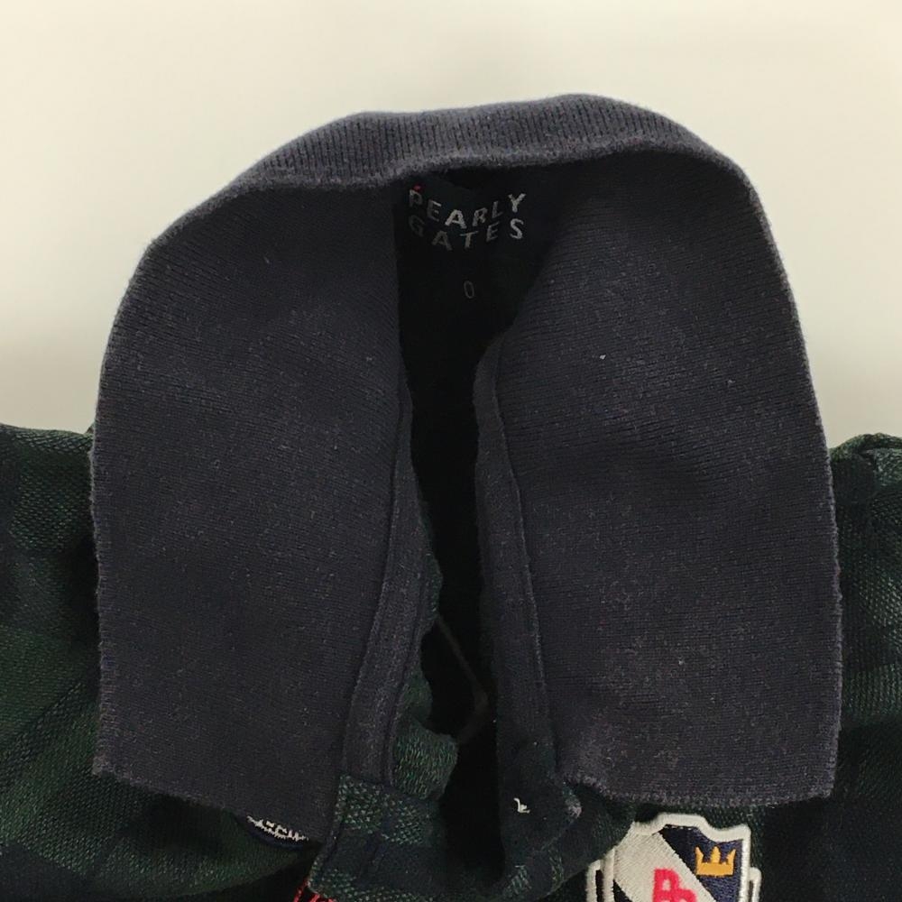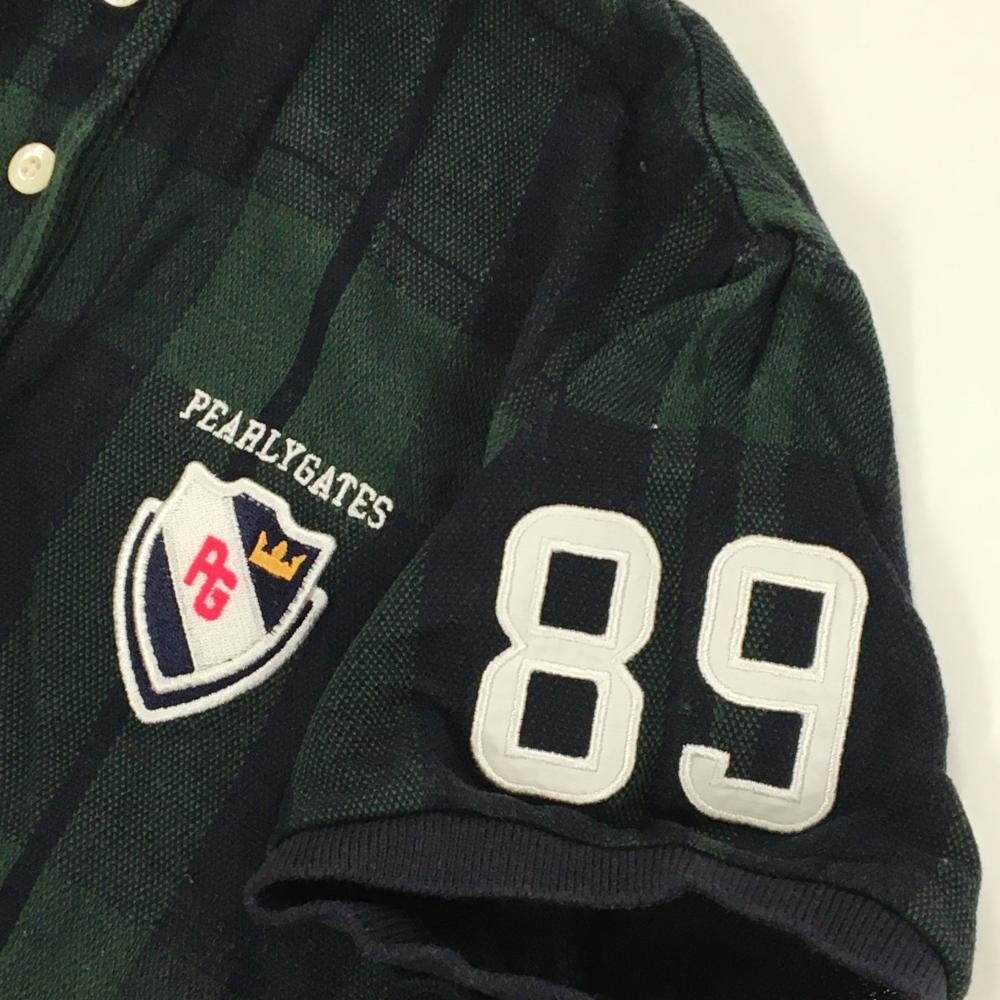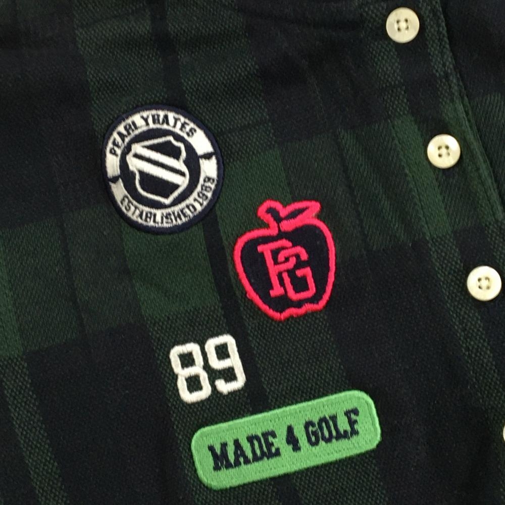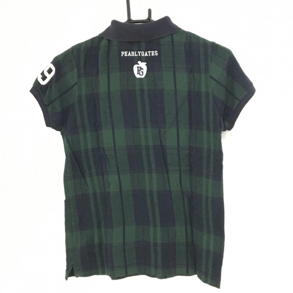 パーリーゲイツ 半袖ポロシャツ グリーン×ネイビー チェック コットン100% リンゴ刺しゅう レディース 0(S) ゴルフウェア PEARLY GATES