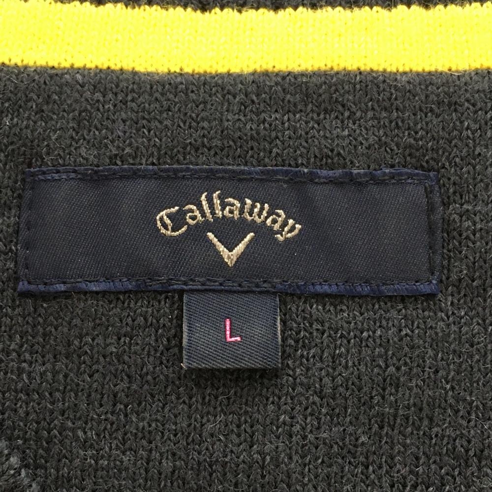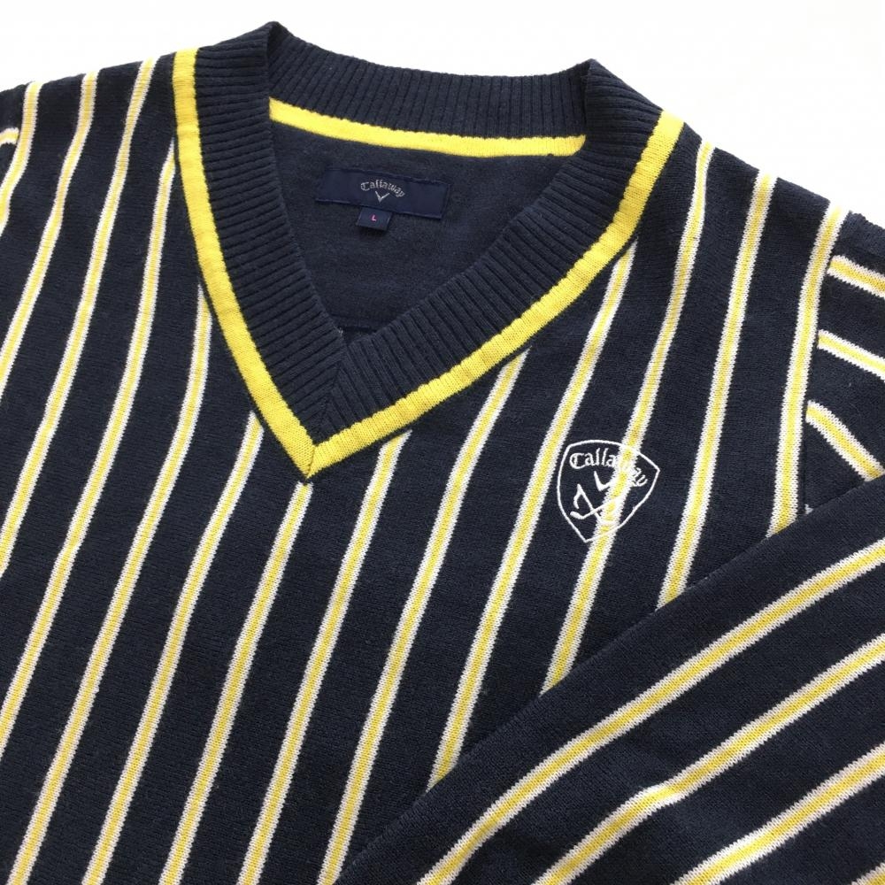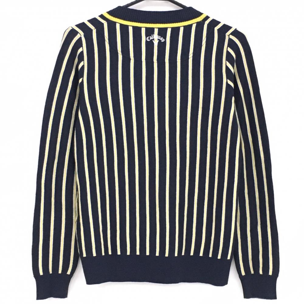 【超美品】キャロウェイ セーター ネイビー×イエロー ストライプ Vネック ニット レディース L ゴルフウェア Callaway