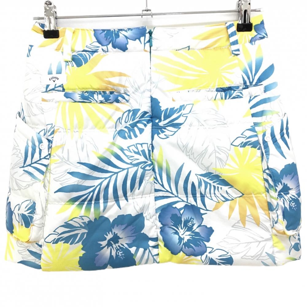【美品】キャロウェイ 中綿スカート 白×ブルー 花柄 リーフ柄 ハイビスカス レディース S ゴルフウェア Callaway