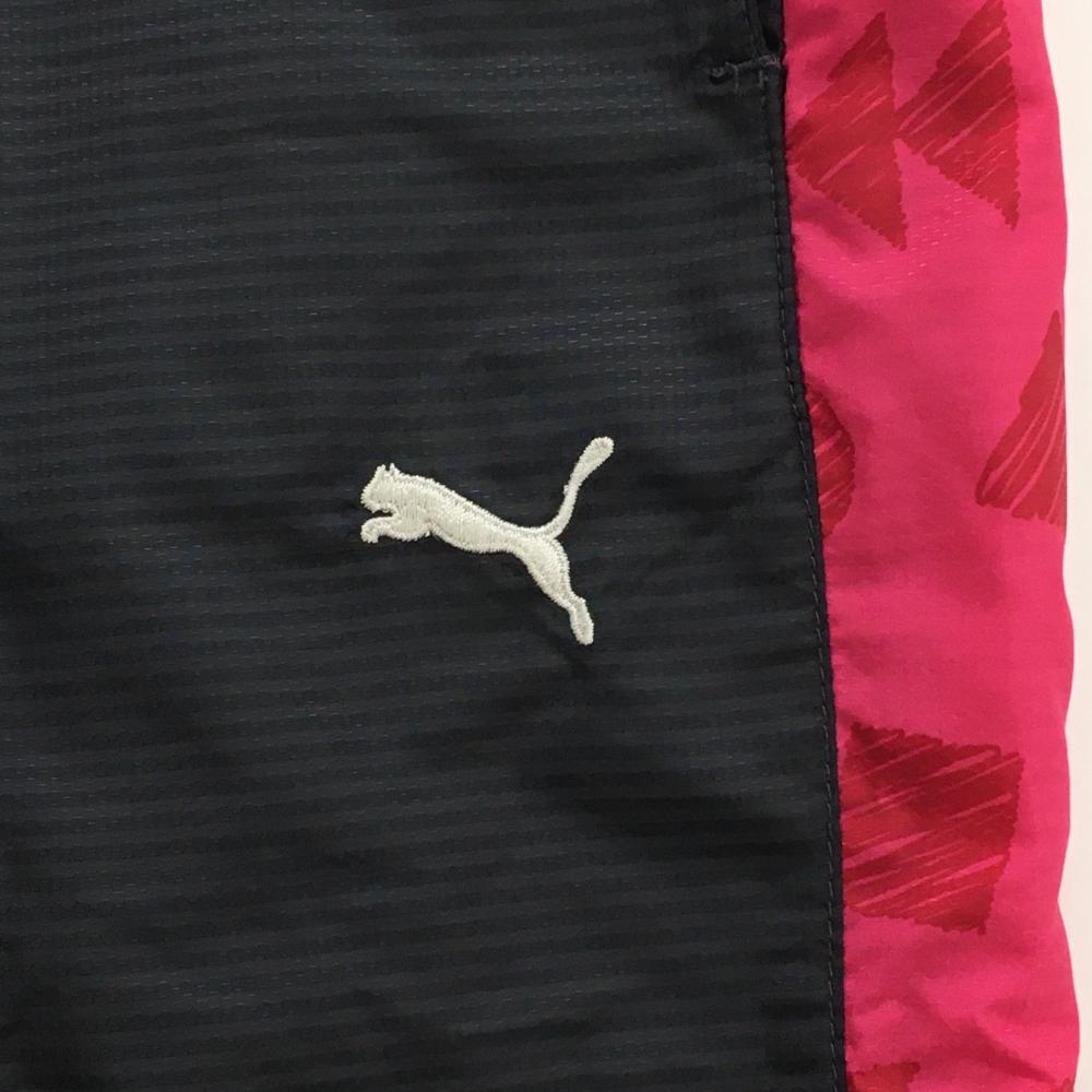 【超美品】プーマ パンツ ダークグレー ボーダー サイドピンク×サイド柄 裏微起毛 レディース M ゴルフウェア PUMA