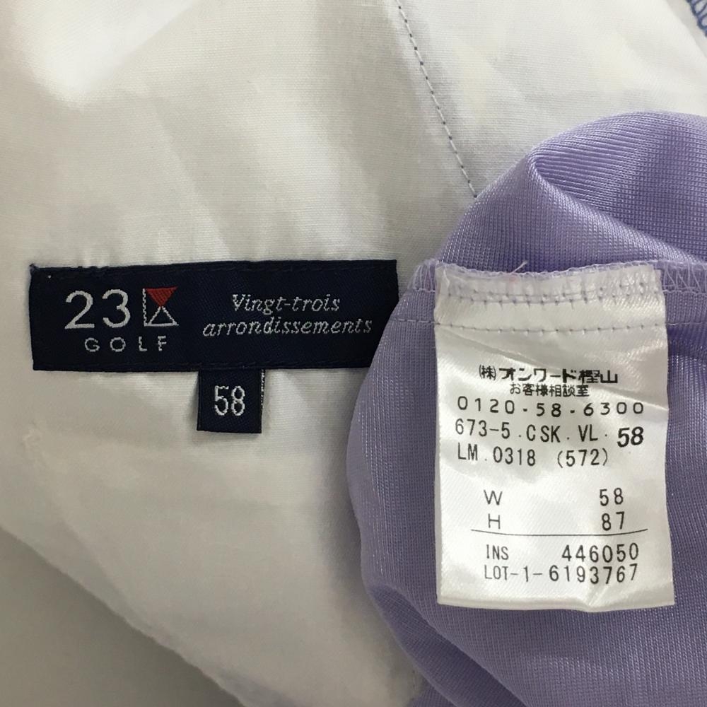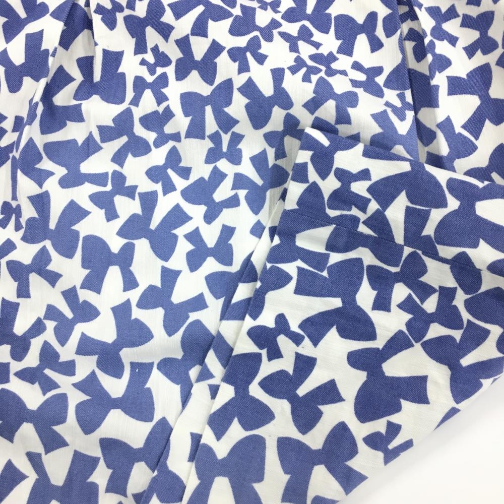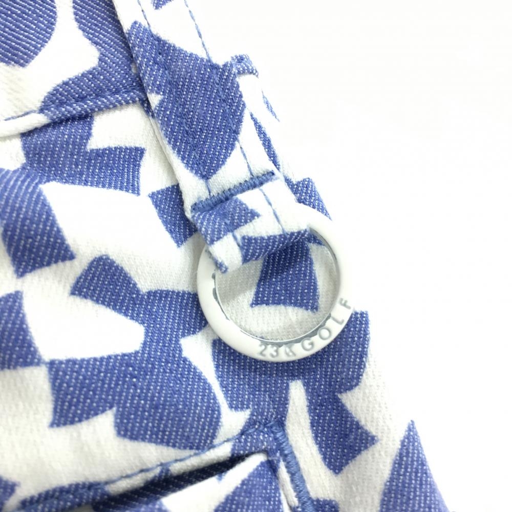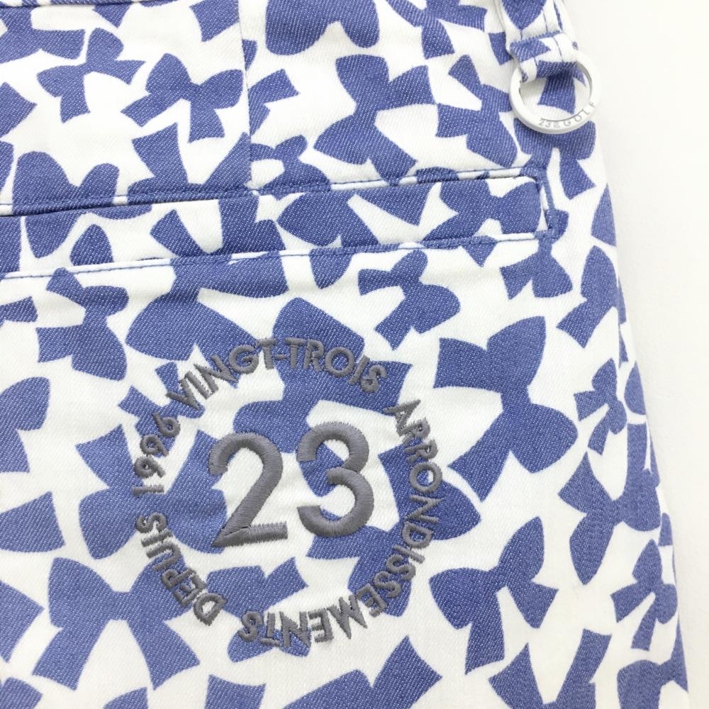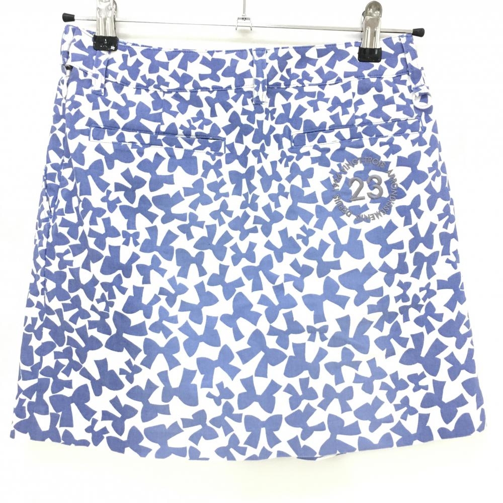 23区ゴルフ スカート 白×ブルー リボン柄 グラデーション インナーパンツ付き 前後色あせ レディース 58 ゴルフウェア 23区