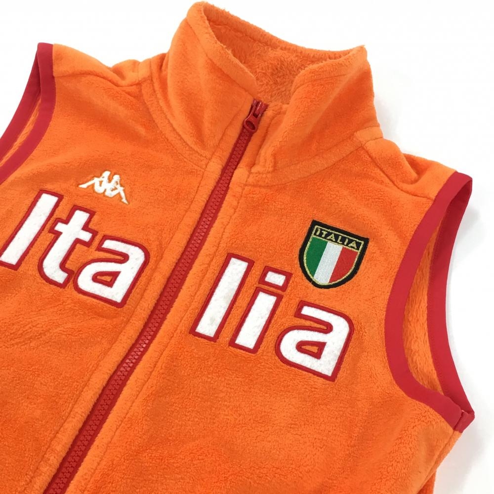 【美品】カッパ フリースアウターベスト オレンジ×白 裏ボア レディース M ゴルフウェア Kappa