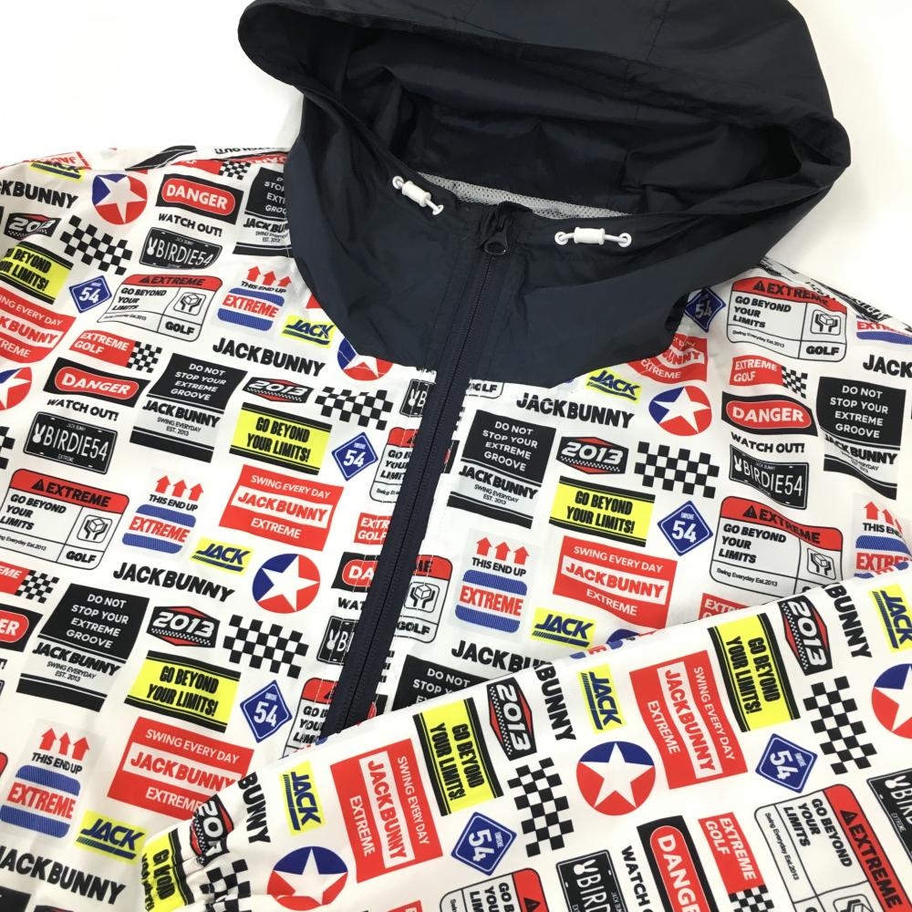 ジャックバニー ジャケットブルゾン 白×マルチ 総柄 メッシュ裏地 メンズ 4(M) ゴルフウェア Jack Bunny