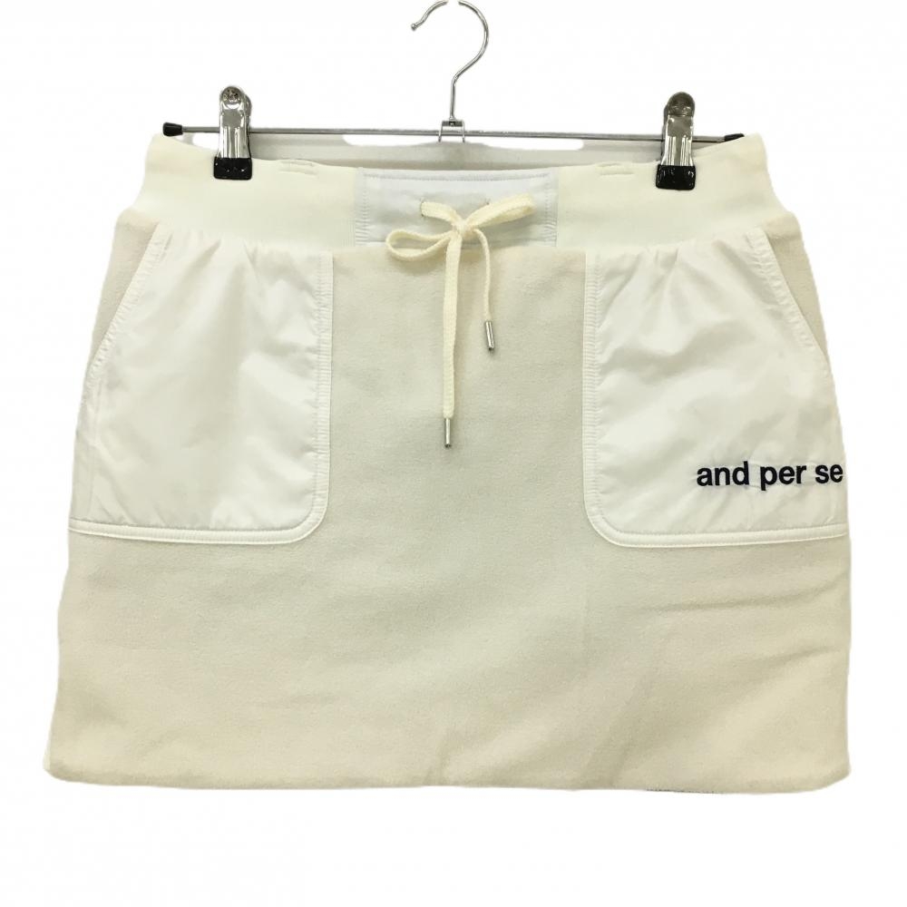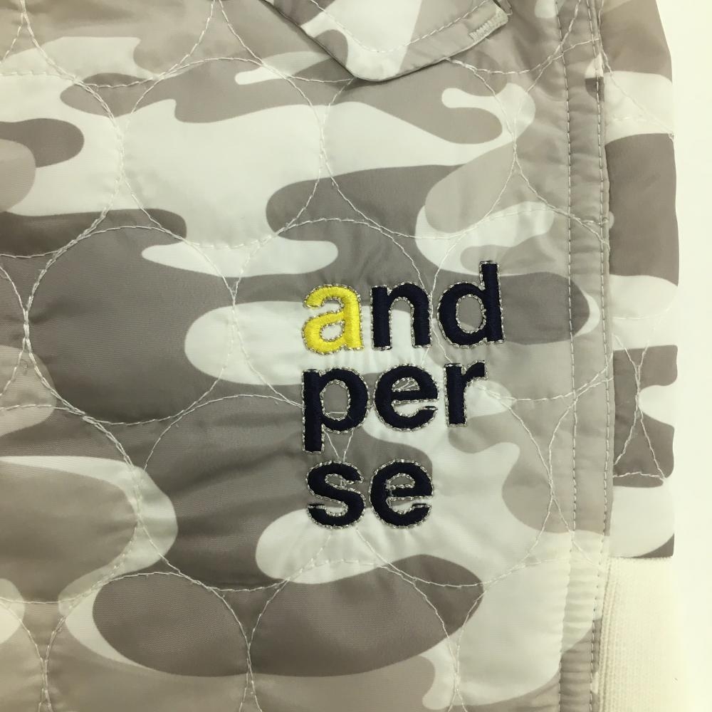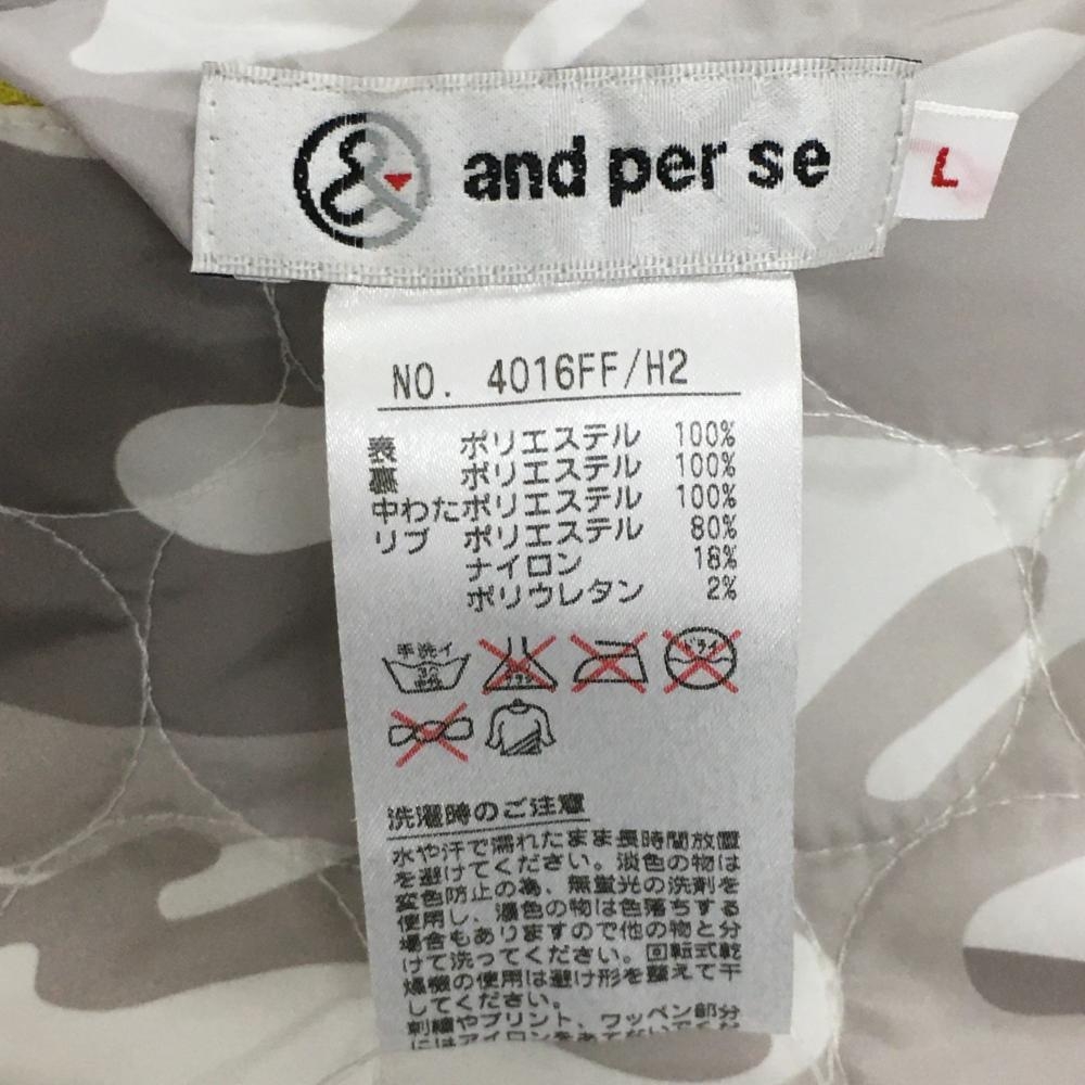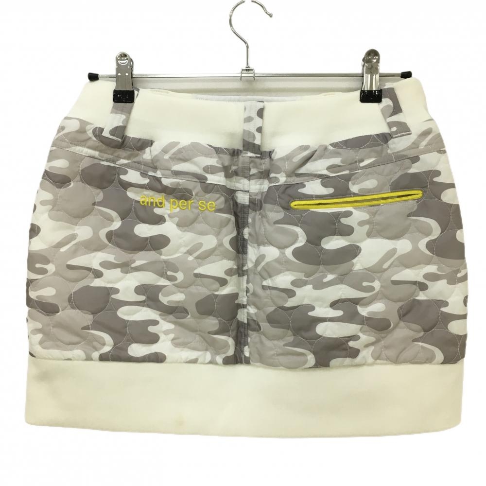 【美品】アンパスィ リバーシブル中綿スカート ライトグレー×白 カモフラ 裏フリース 迷彩 レディース L ゴルフウェア and per se