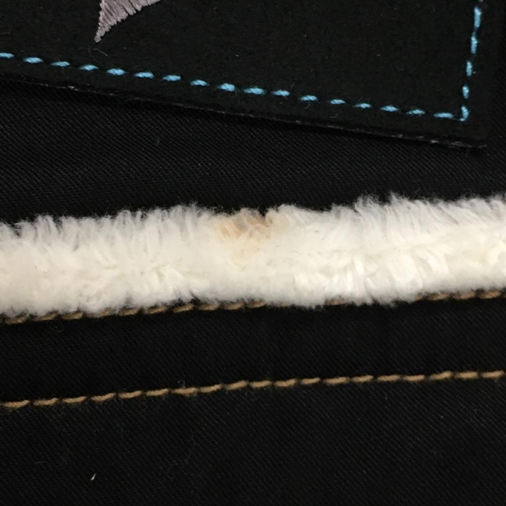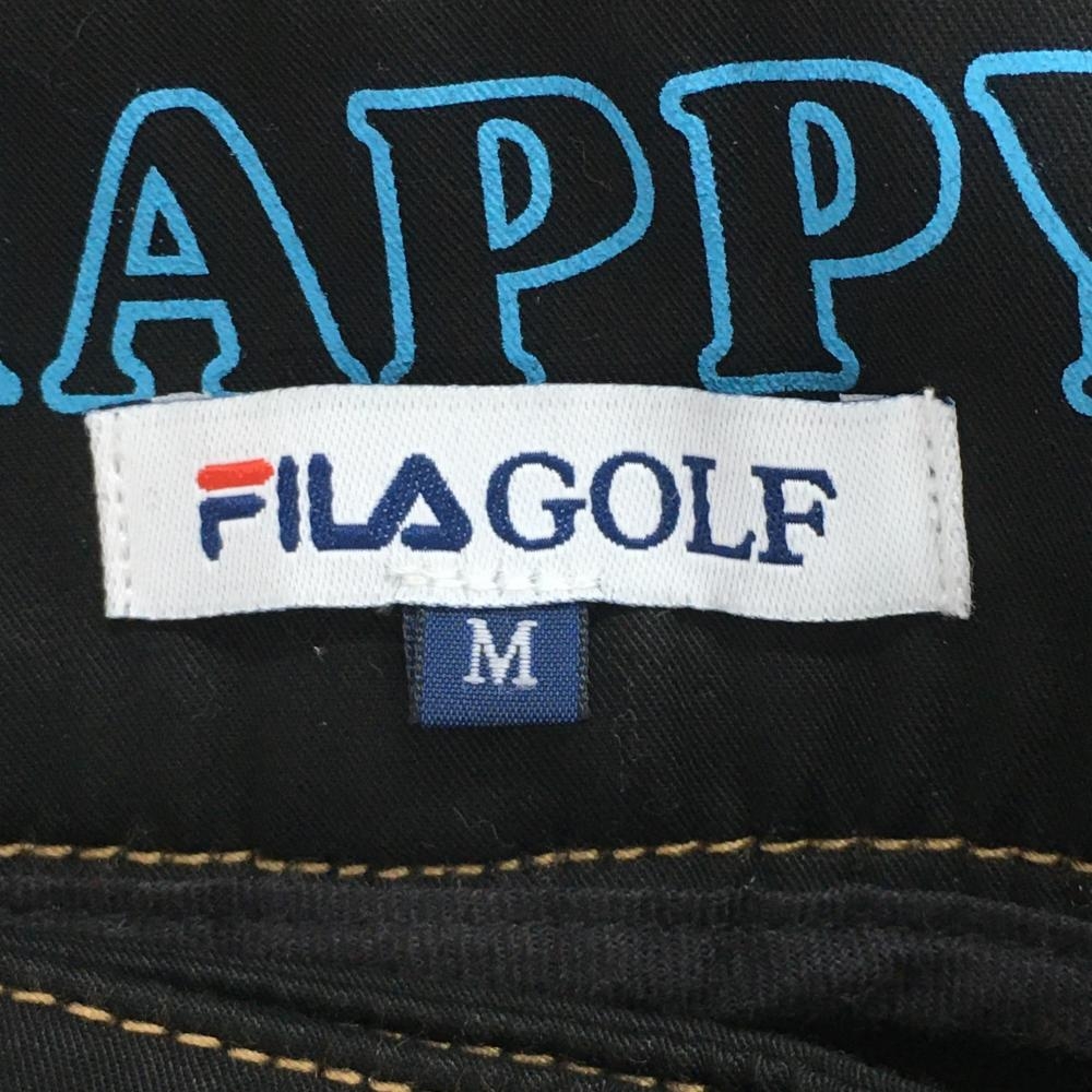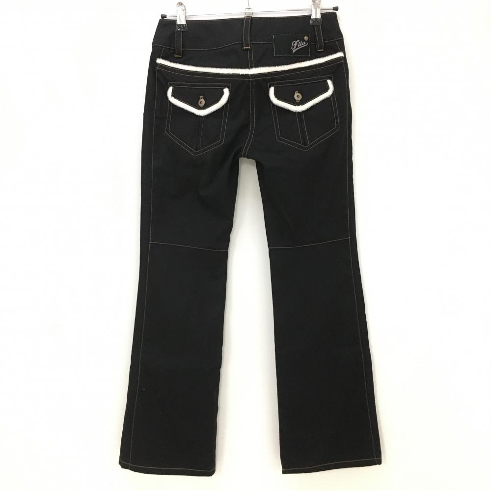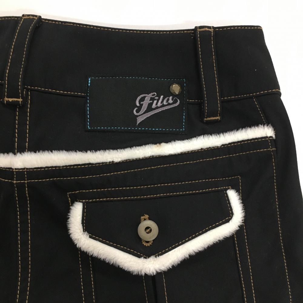 【美品】フィラゴルフ パンツ 黒×ライトブラウン ステッチ ロゴ刺しゅう 一部ファー 裏微起毛 レディース M ゴルフウェア FILA GOLF