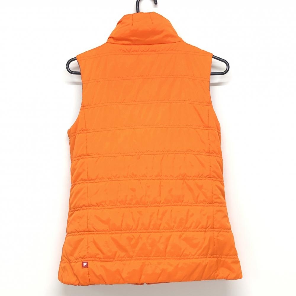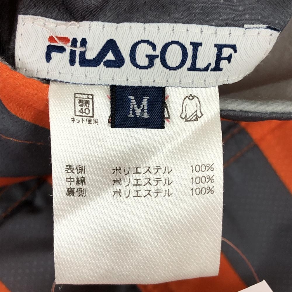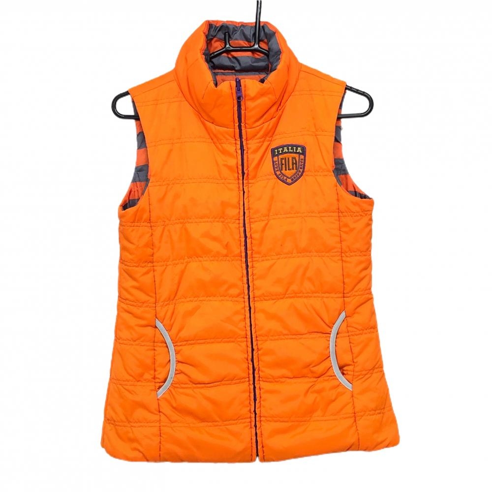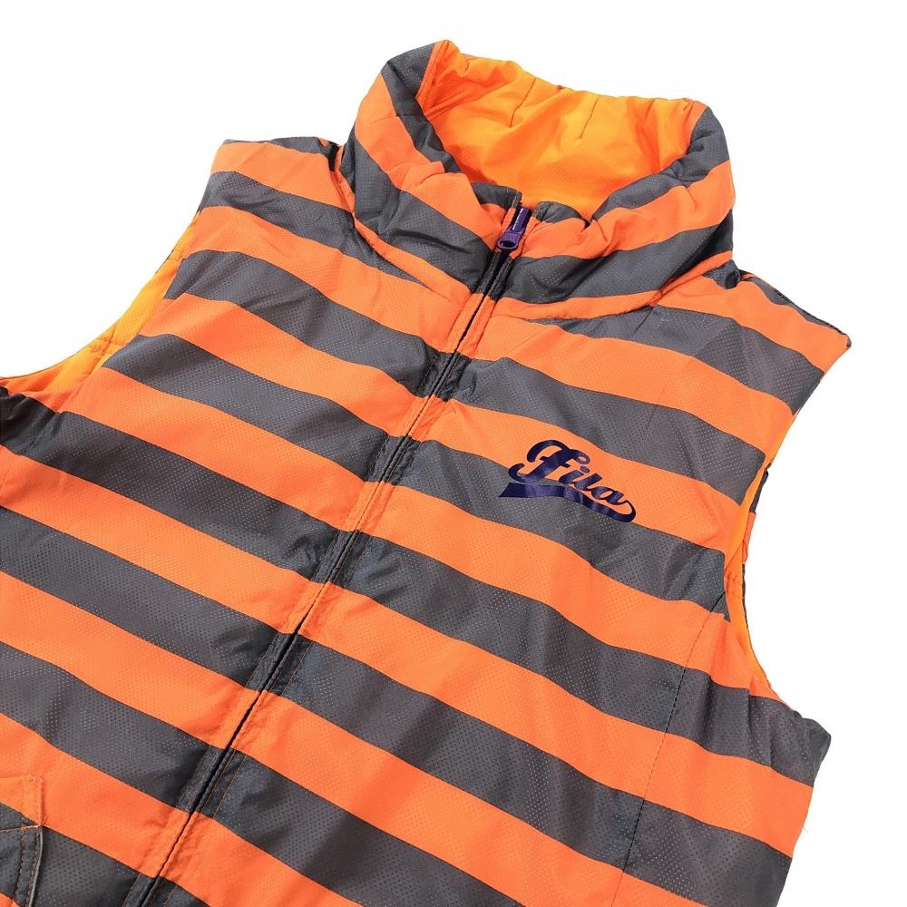 フィラゴルフ 中綿リバーシブルベスト オレンジ×グレー ボーダー ロゴプリント レディース M ゴルフウェア FILA GOLF