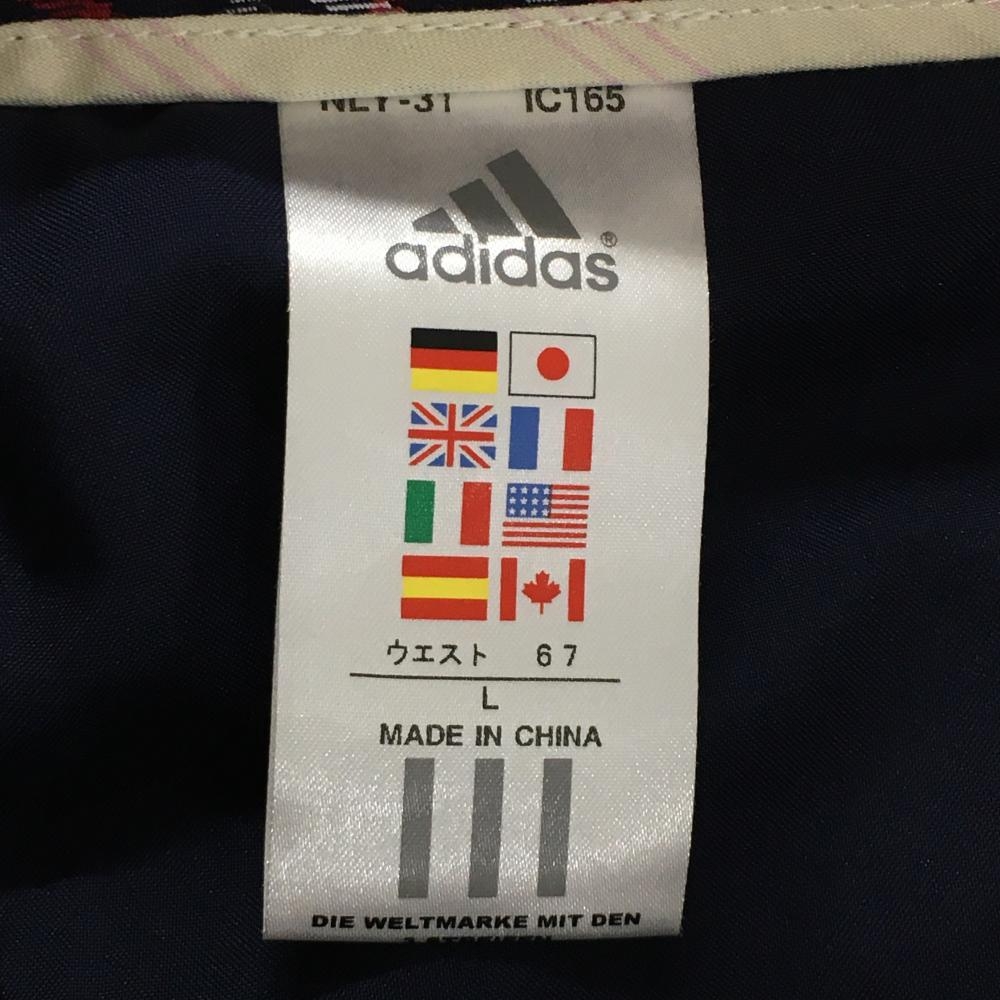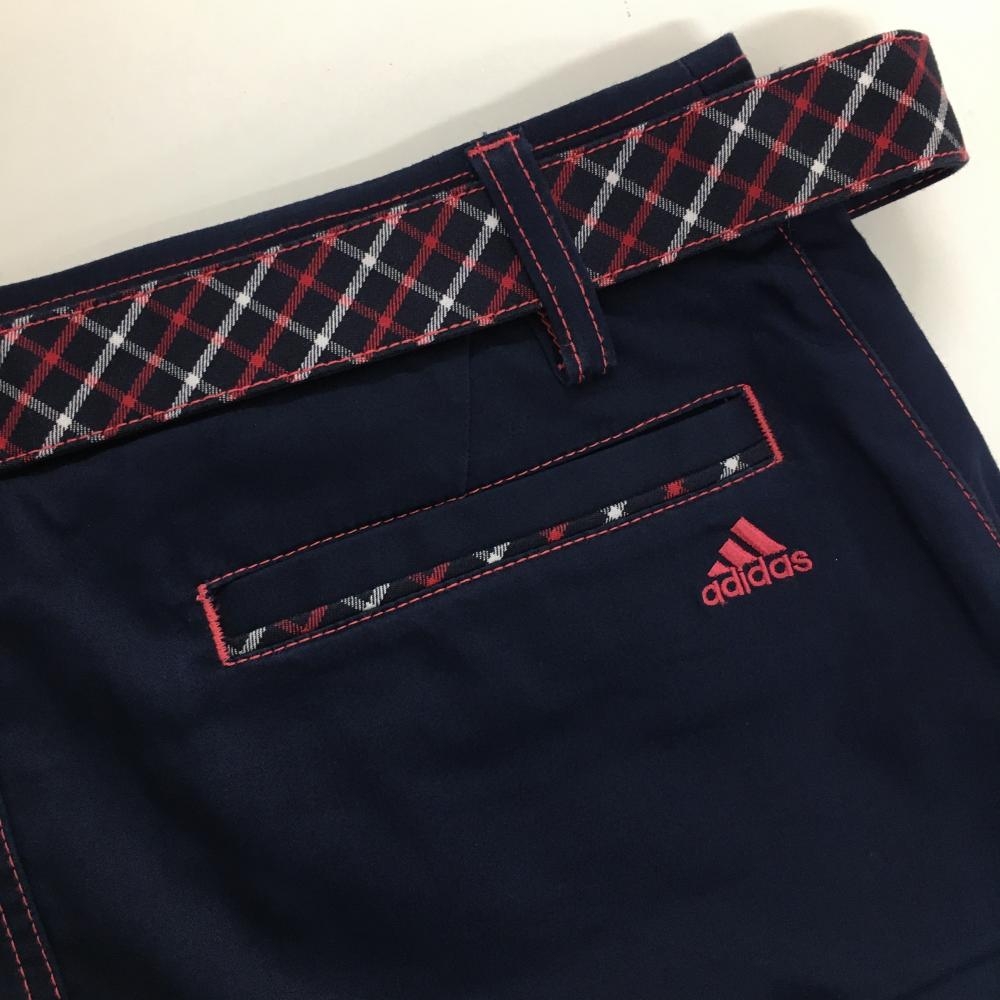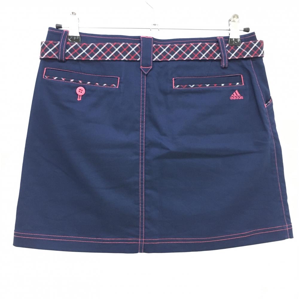 【美品】アディダス スカート ネイビー×ピンク ステッチ ベルト付き ストレッチ レディース L/G ゴルフウェア adidas