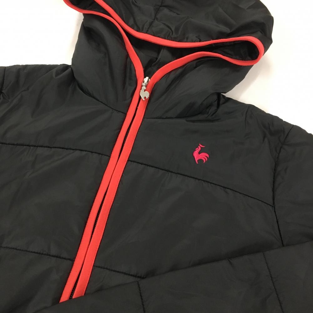 ルコック フード付き中綿ジャケット 黒×レッド ロゴ刺しゅう レディース M ゴルフウェア le coq sportif
