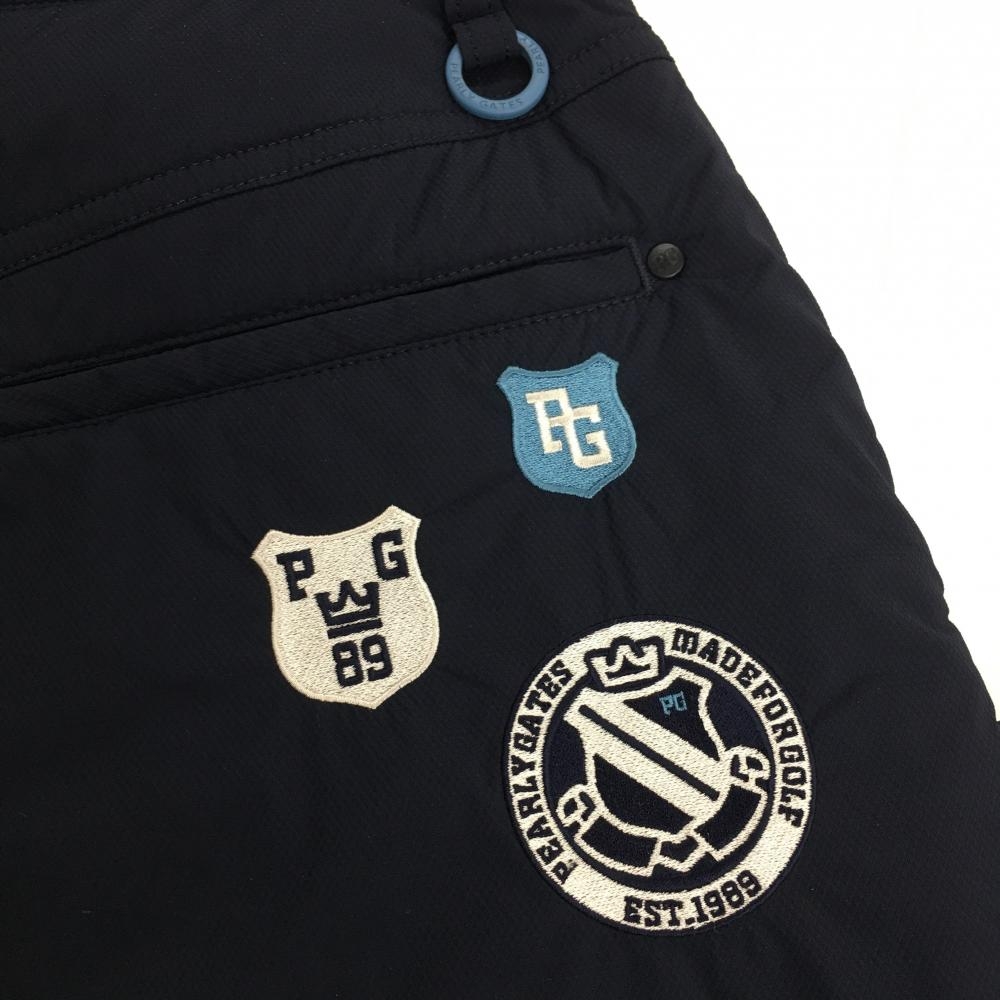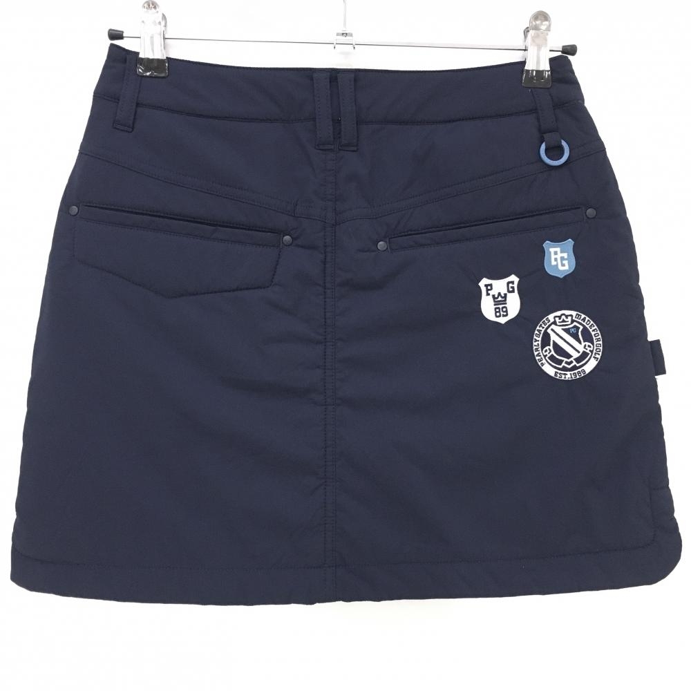 【超美品】パーリーゲイツ 中綿スカート ネイビー 複数刺しゅうワッペン ポケット口毛羽立ち少 レディース M ゴルフウェア PEARLY GATES