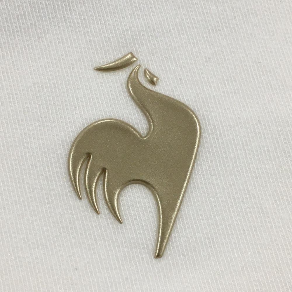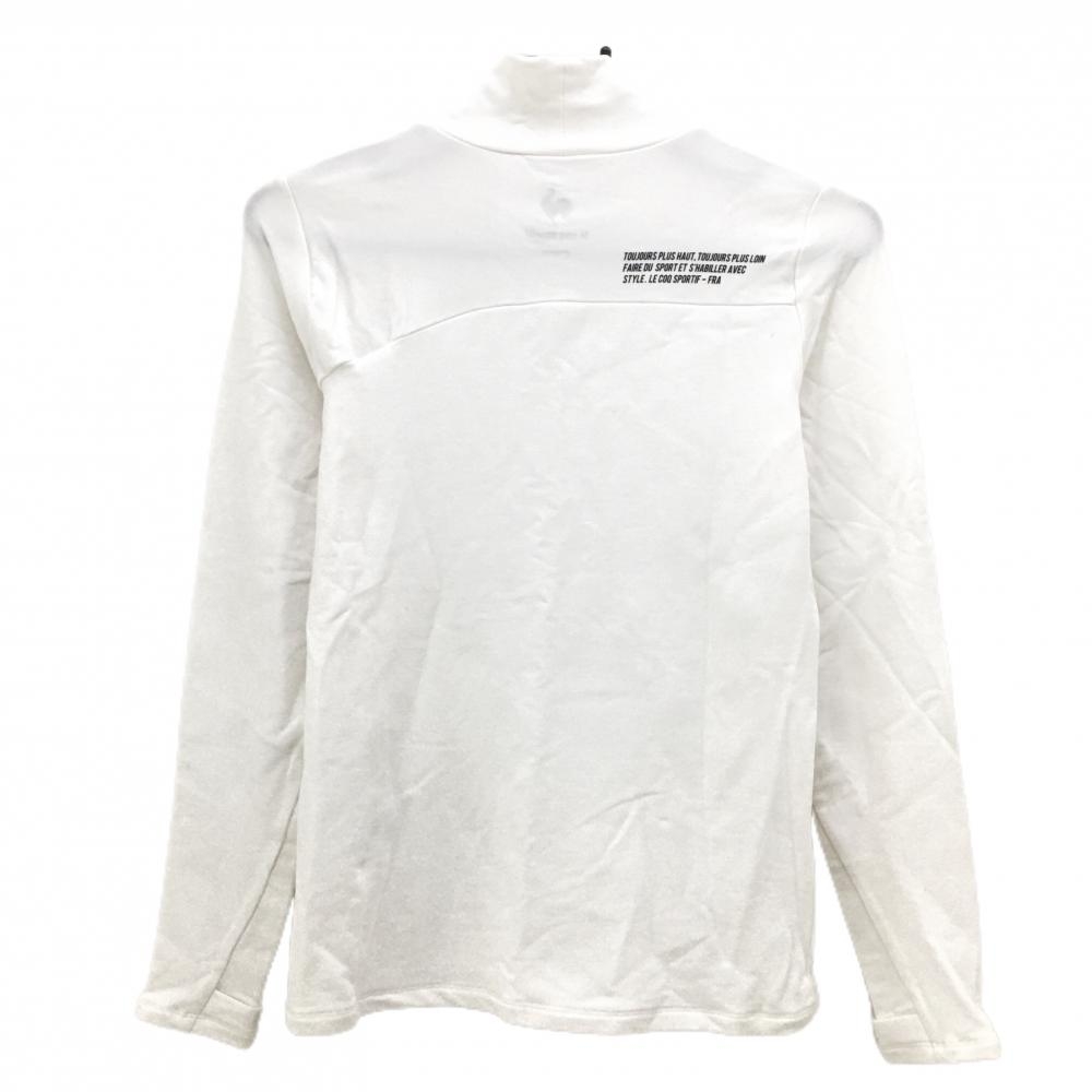 【超美品】ルコック 長袖ハイネックシャツ 白×ゴールド 胸元ロゴ アクリル混 ストレッチ レディース M ゴルフウェア le coq sportif