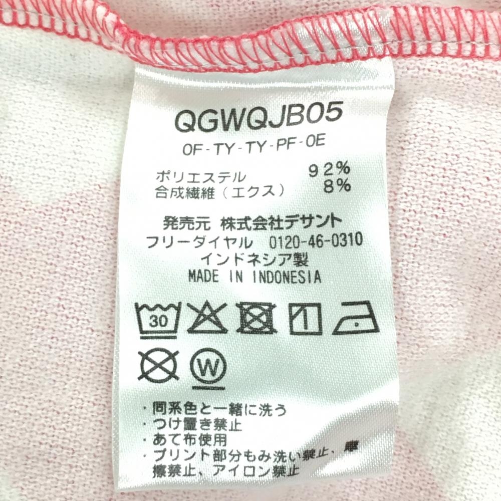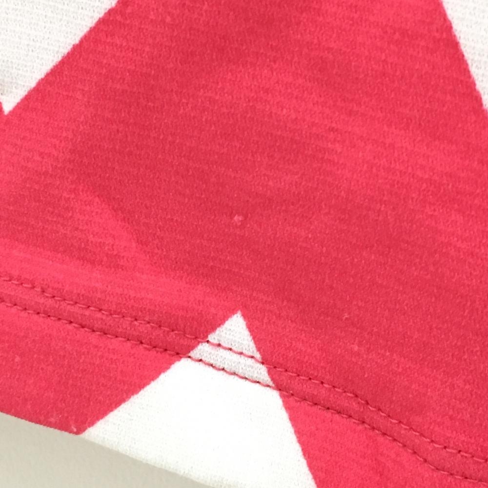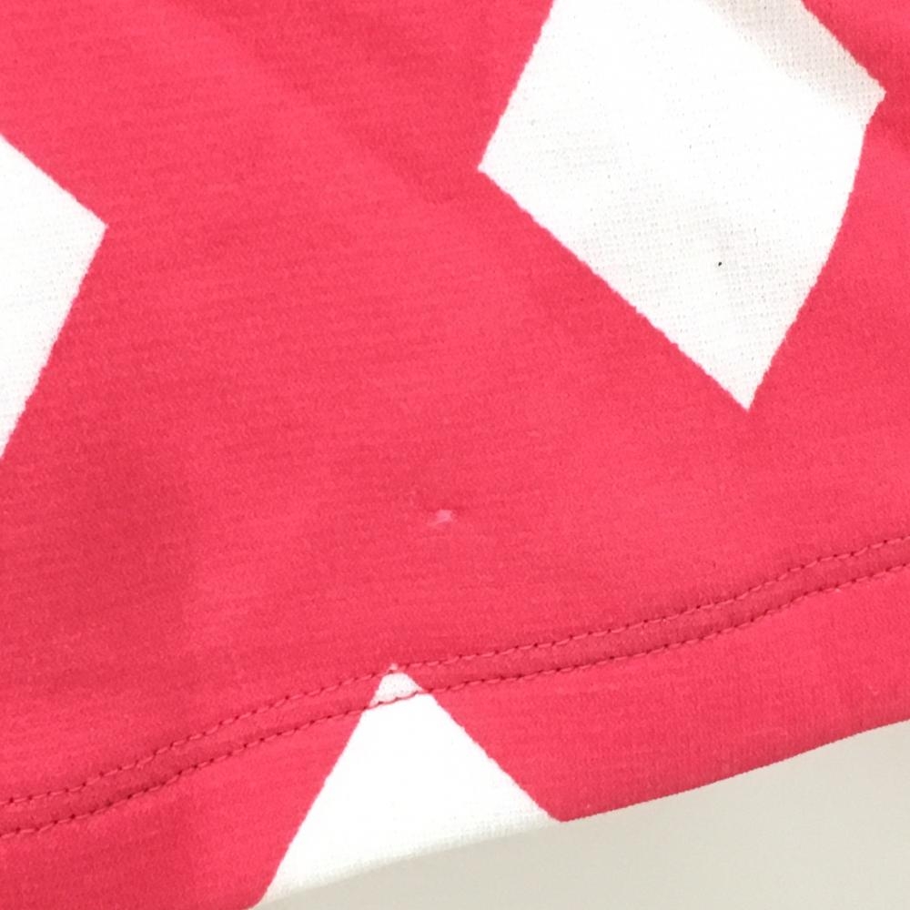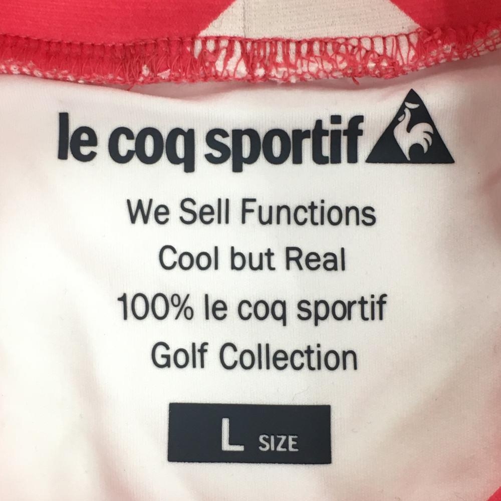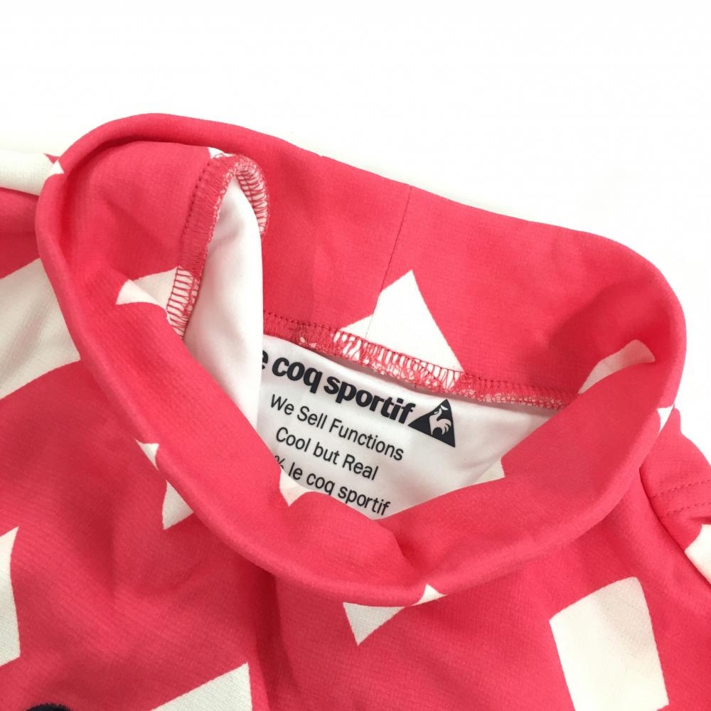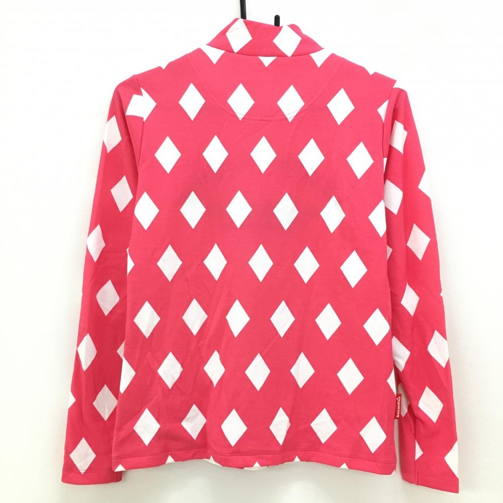 【美品】ルコック 長袖ハイネックシャツ ピンク×白 ダイヤ柄 ロゴ刺しゅう 総柄 レディース L ゴルフウェア le coq sportif