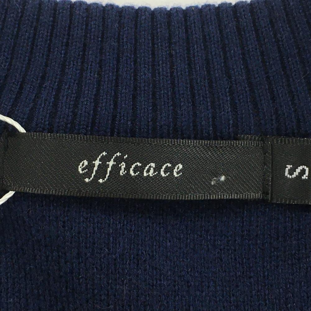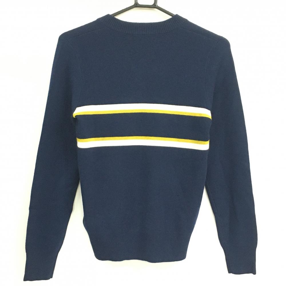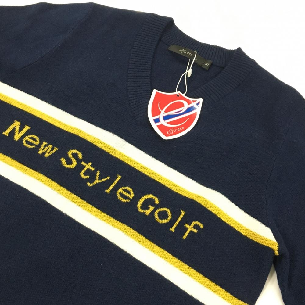 【新品】エフィカス セーター ネイビー×イエロー ニット ウール混 Vネック レディース S ゴルフウェア efficace