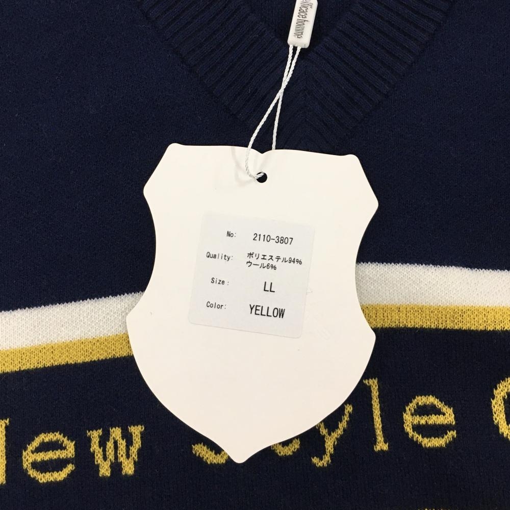 【新品】エフィカス Vネックセーター ネイビー×イエロー New Style Golf NAMIGOLF メンズ LL ゴルフウェア efficace