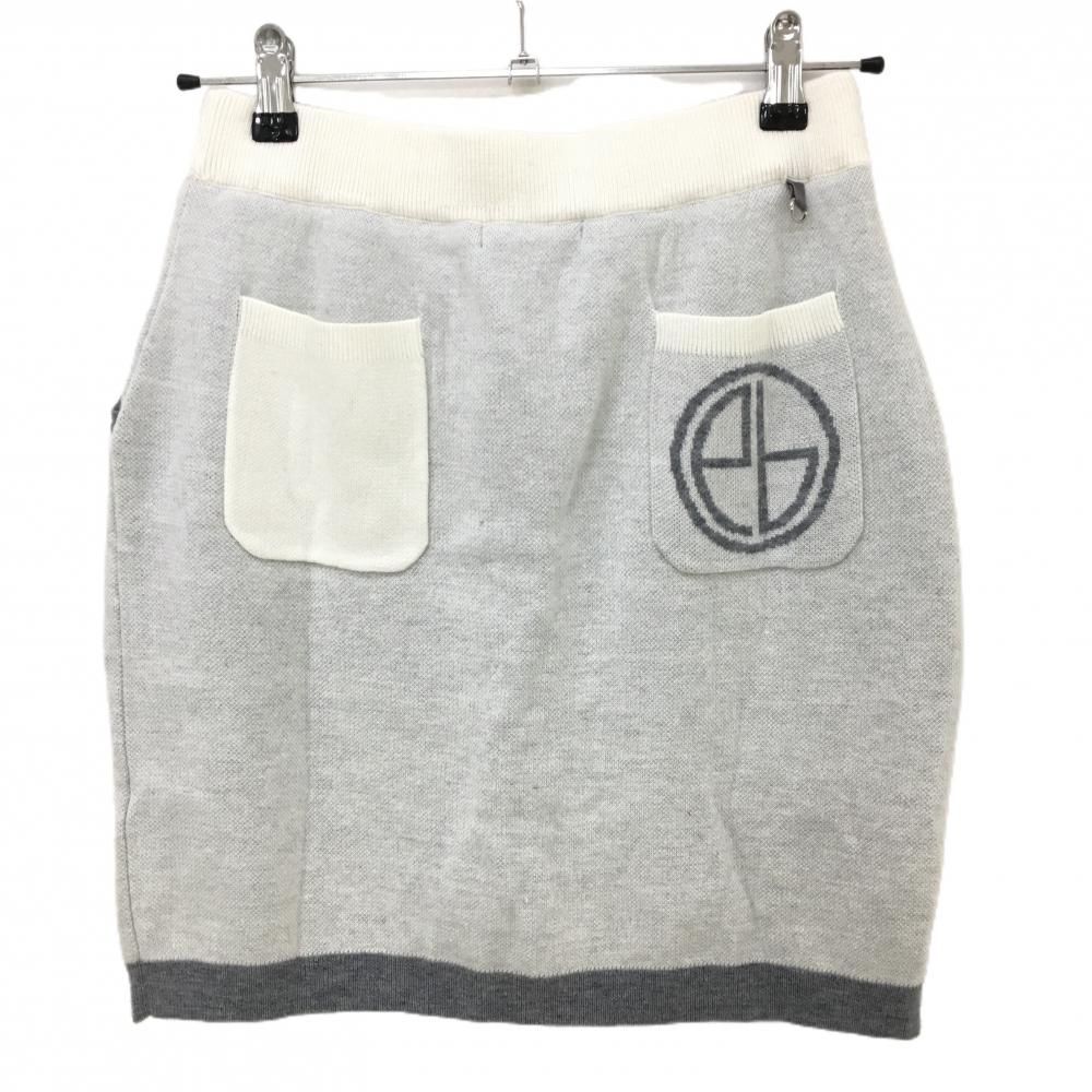 【新品】エフィカスブラン ニットスカート 白×ライトグレー ウール混 内側起毛インナーパンツ レディース L ゴルフウェア efficace