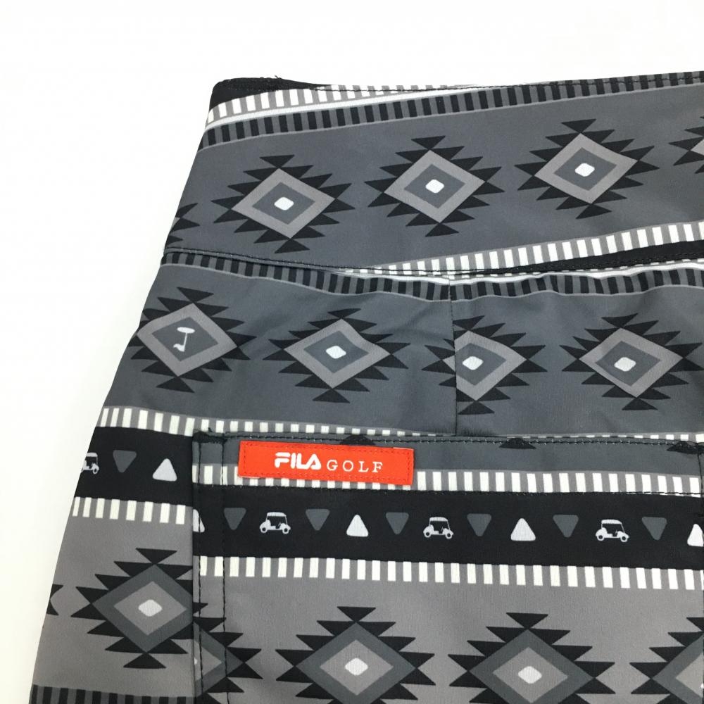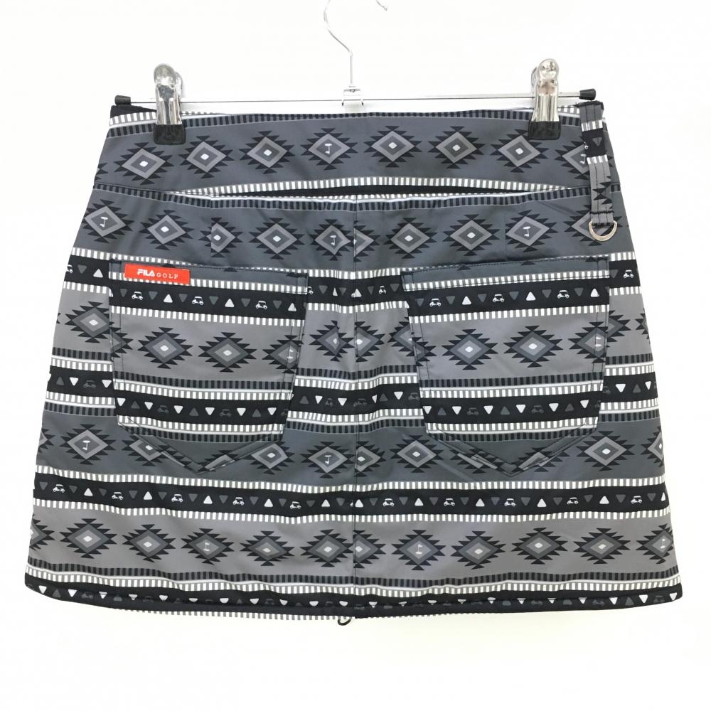 【超美品】フィラゴルフ 中綿リバーシブルスカート グレー×黒 総柄 裏黒 レディース M ゴルフウェア FILA GOLF