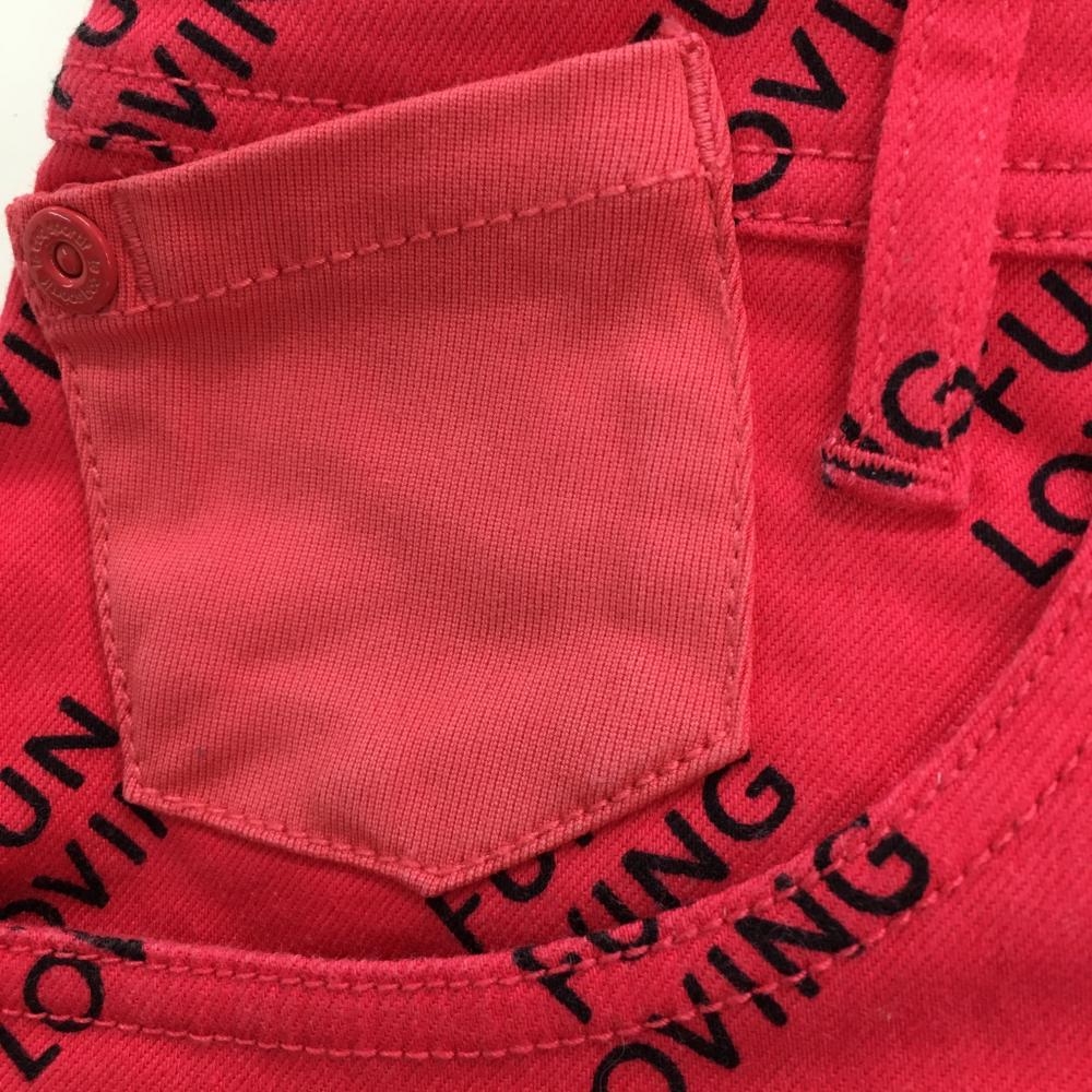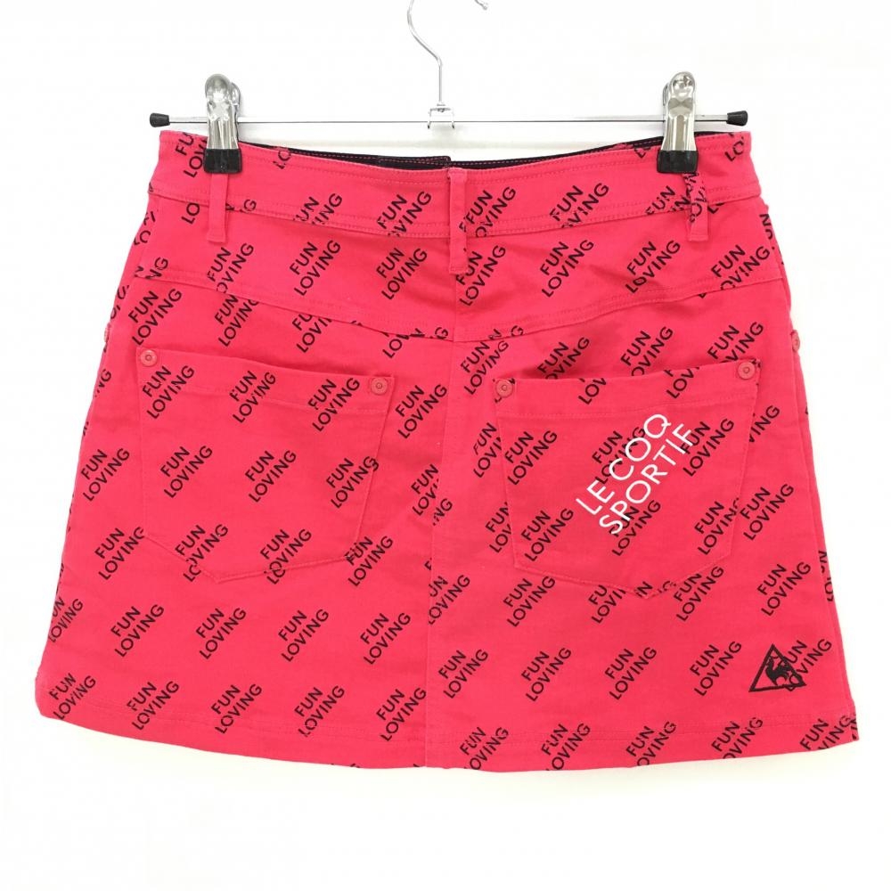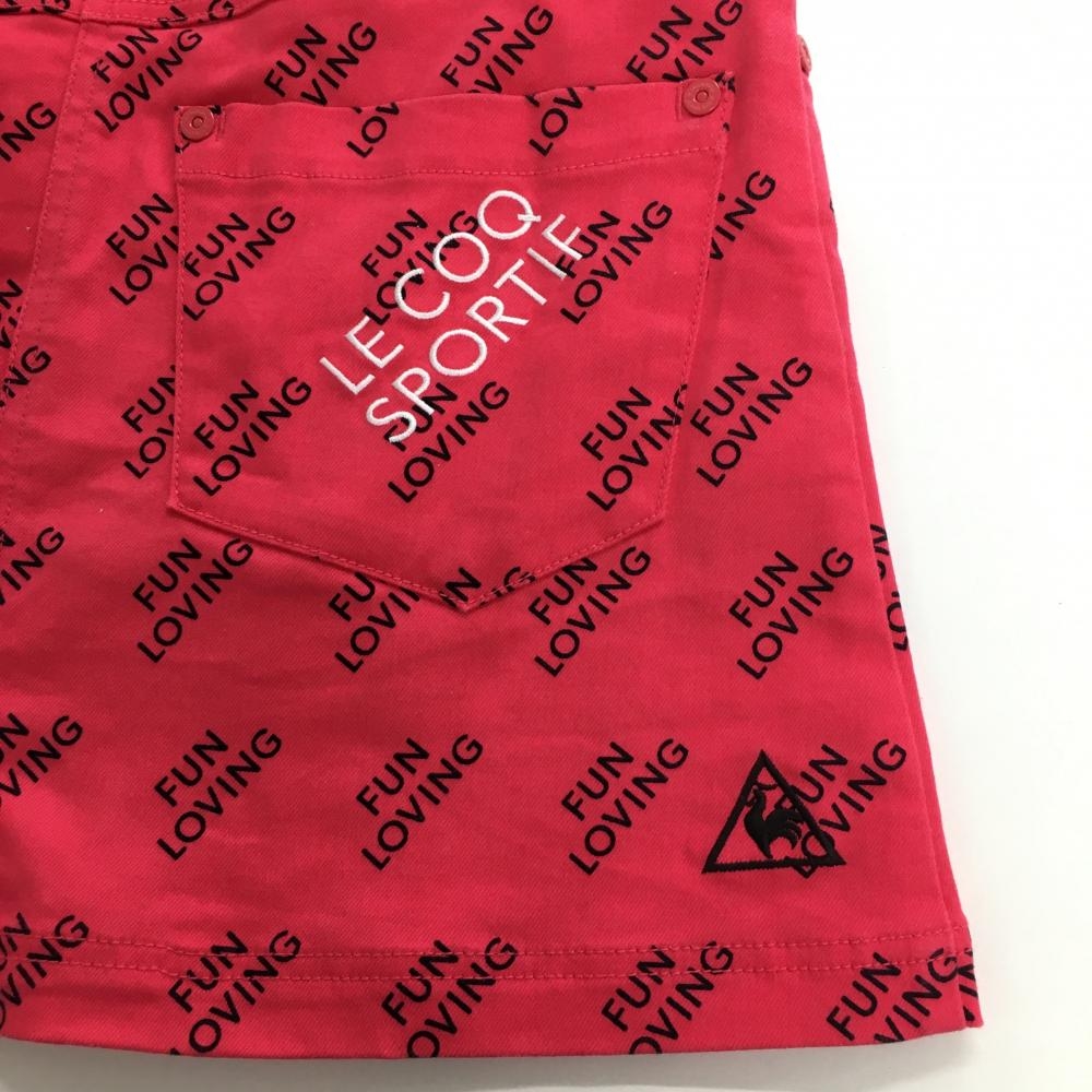 【美品】ルコック スカート レッド×黒 英字総柄 ストレッチ レディース 9 ゴルフウェア le coq sportif