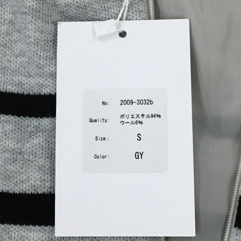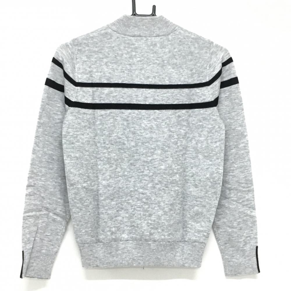 【新品】エフィカスブラン ニットジャケット ライトグレー×黒 ウール混 ライン レディース S ゴルフウェア efficace