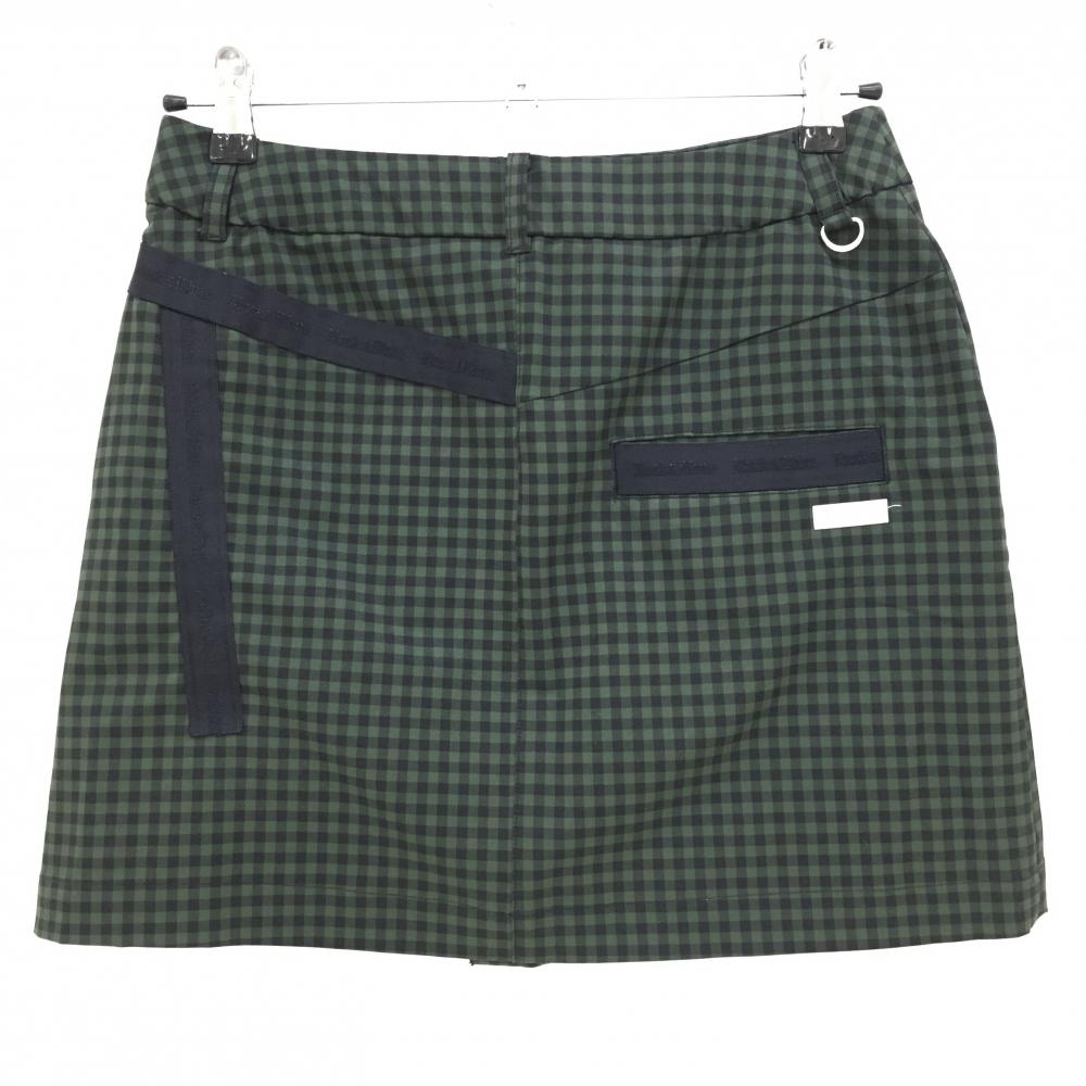 ブラックアンドホワイト スカート 黒×ダークグリーン ギンガムチェック ポケット口等ロゴテープ レディース M ゴルフウェア Black&White