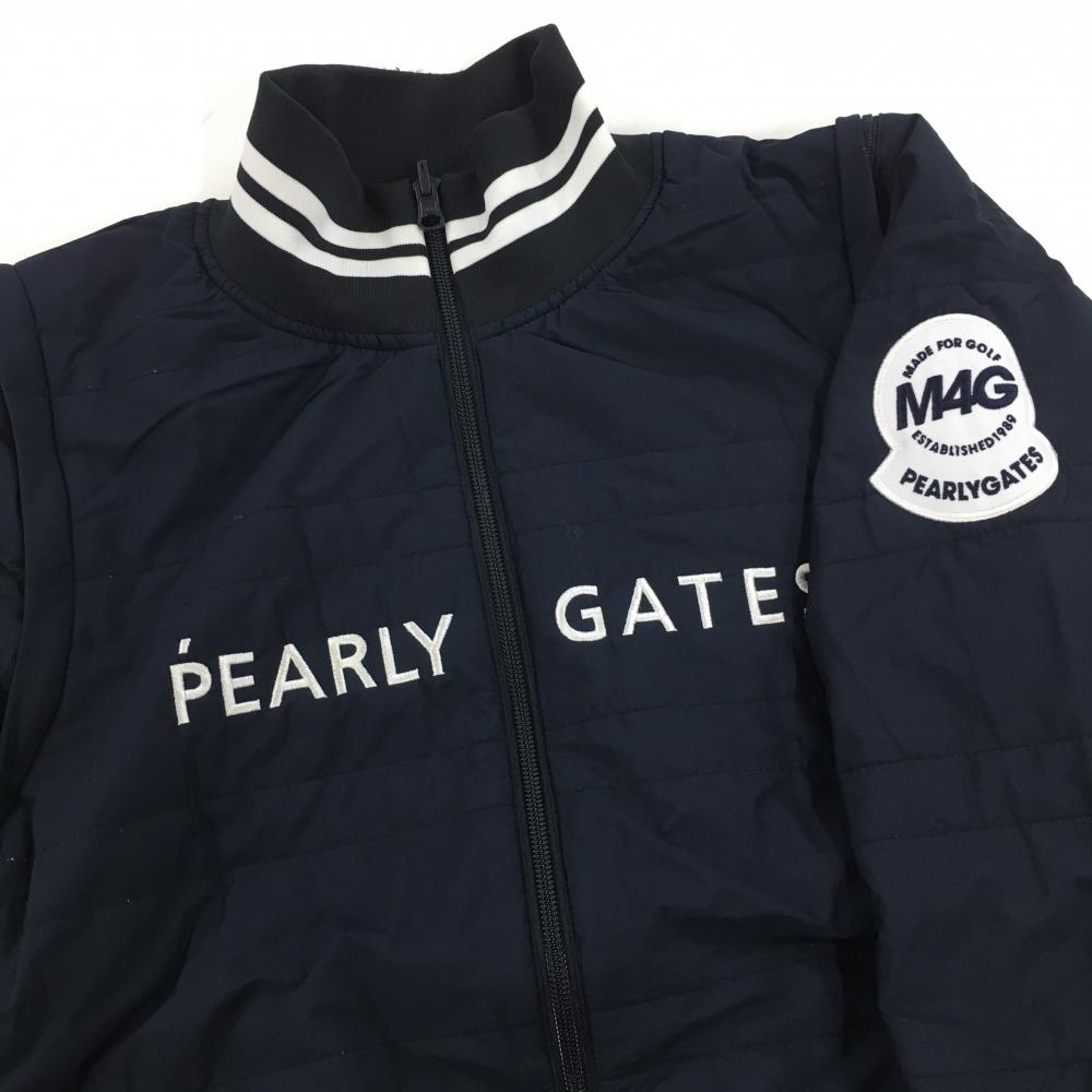 パーリーゲイツ 4WAYリバーシブル中綿ジャケット ネイビー×白 ロゴ刺しゅう 袖着脱可 レディース 0(S) ゴルフウェア PEARLY GATES