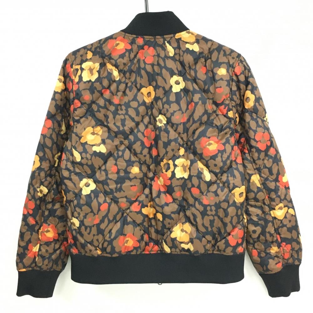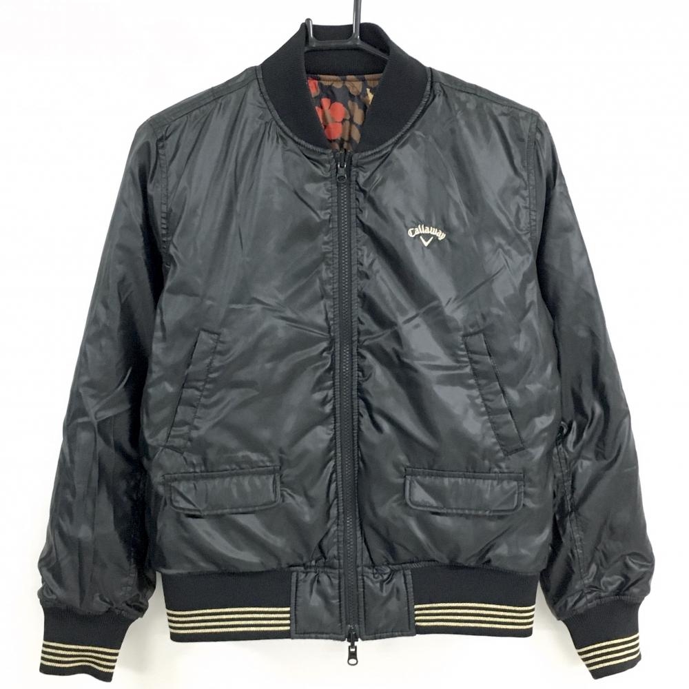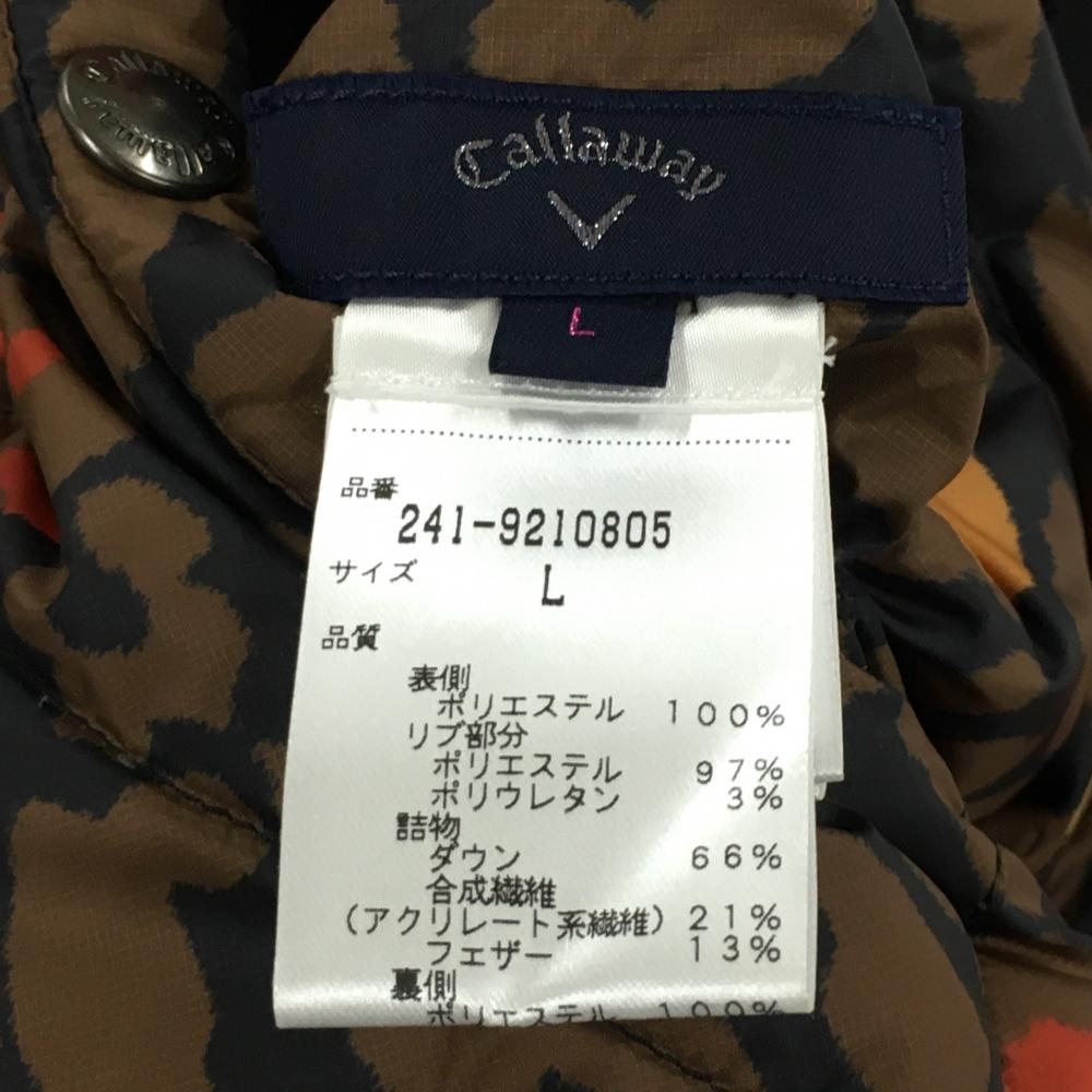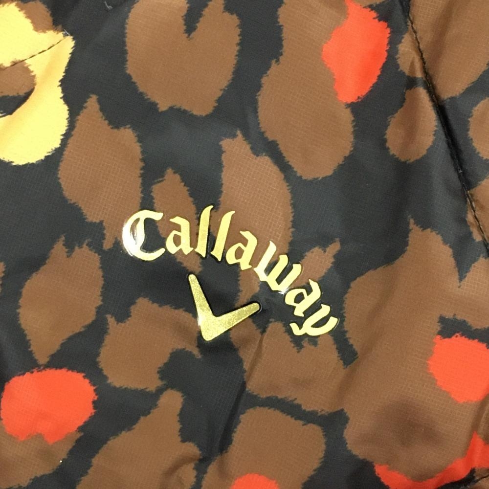 キャロウェイ リバーシブルダウンジャケット 黒×ブラウン レオパード 花 総柄 裏無地 レディース L ゴルフウェア Callaway