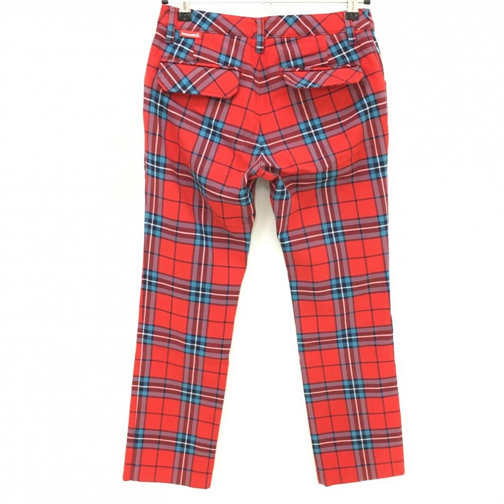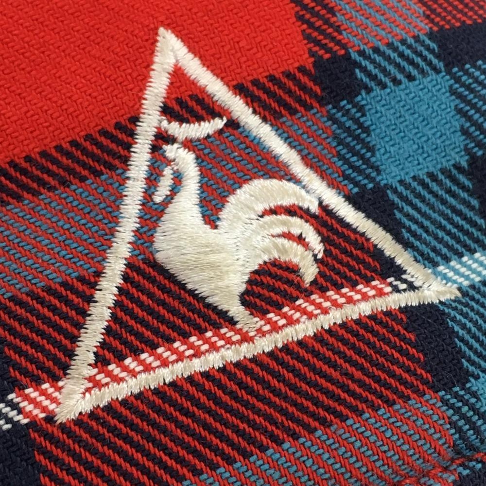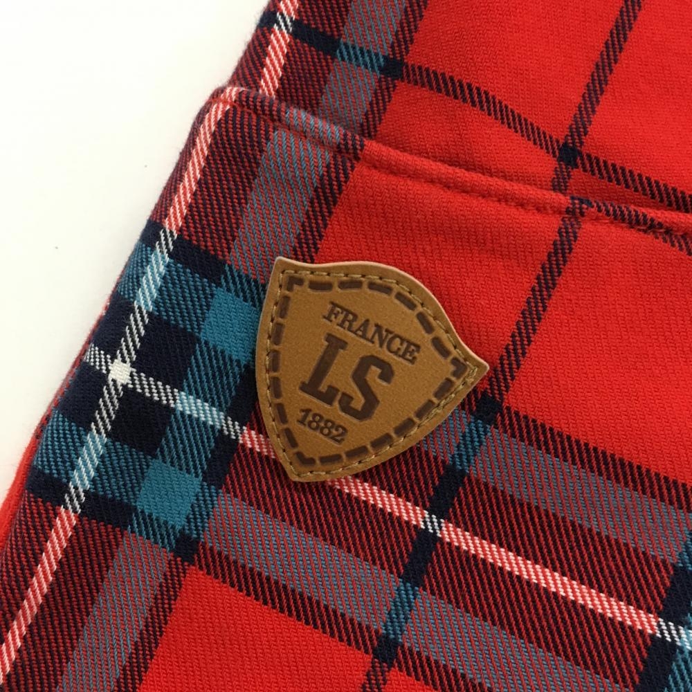 【美品】ルコック パンツ レッド×ブルー チェック 裏起毛 レディース 9 ゴルフウェア le coq sportif