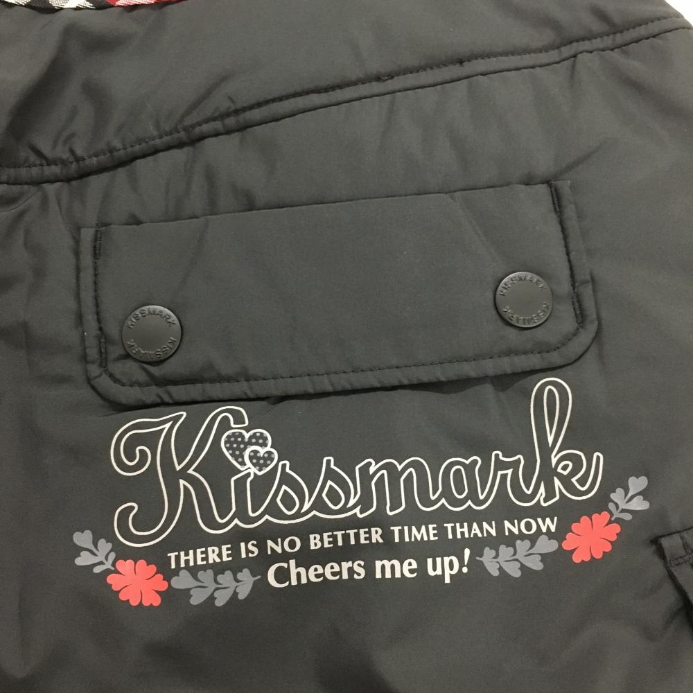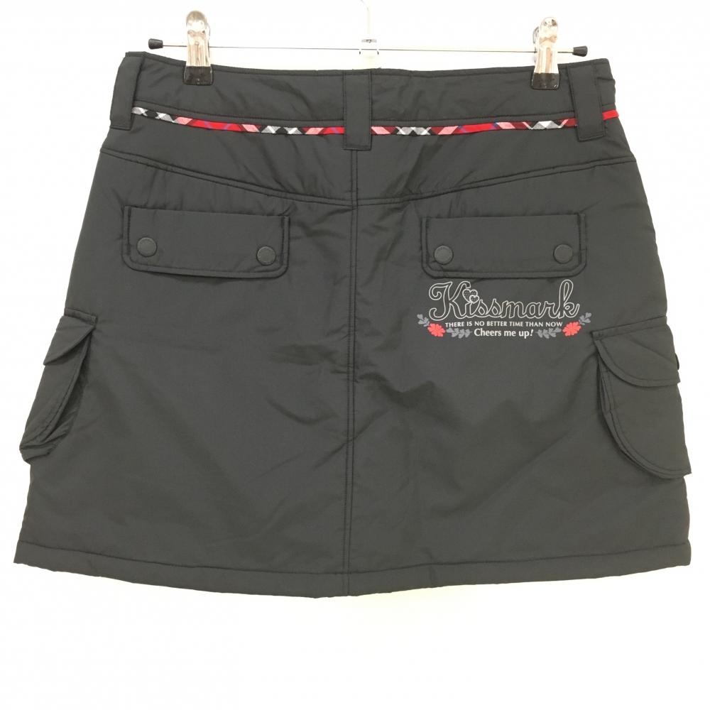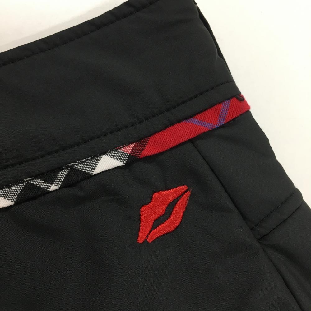 【超美品】キスマークゴルフ 中綿スカート 黒×レッド ウエスト下チェックライン レディース 11 ゴルフウェア kissmark