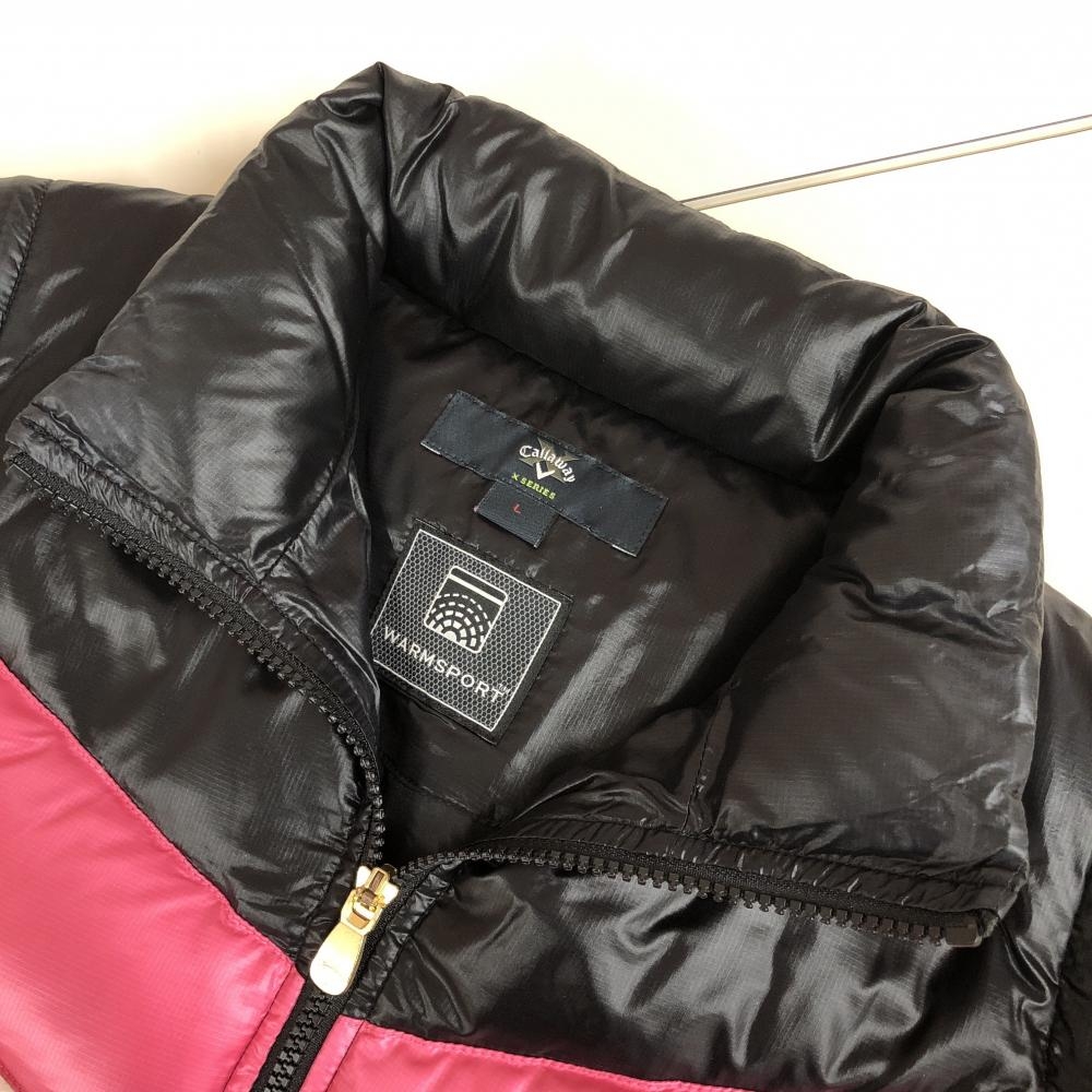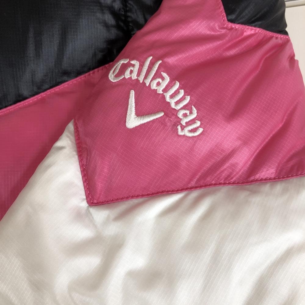 【美品】キャロウェイ ダウンジャケット 黒×ピンク×白 袖着脱可 レディース L ゴルフウェア Callaway
