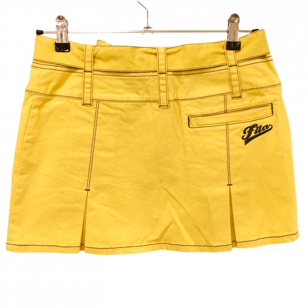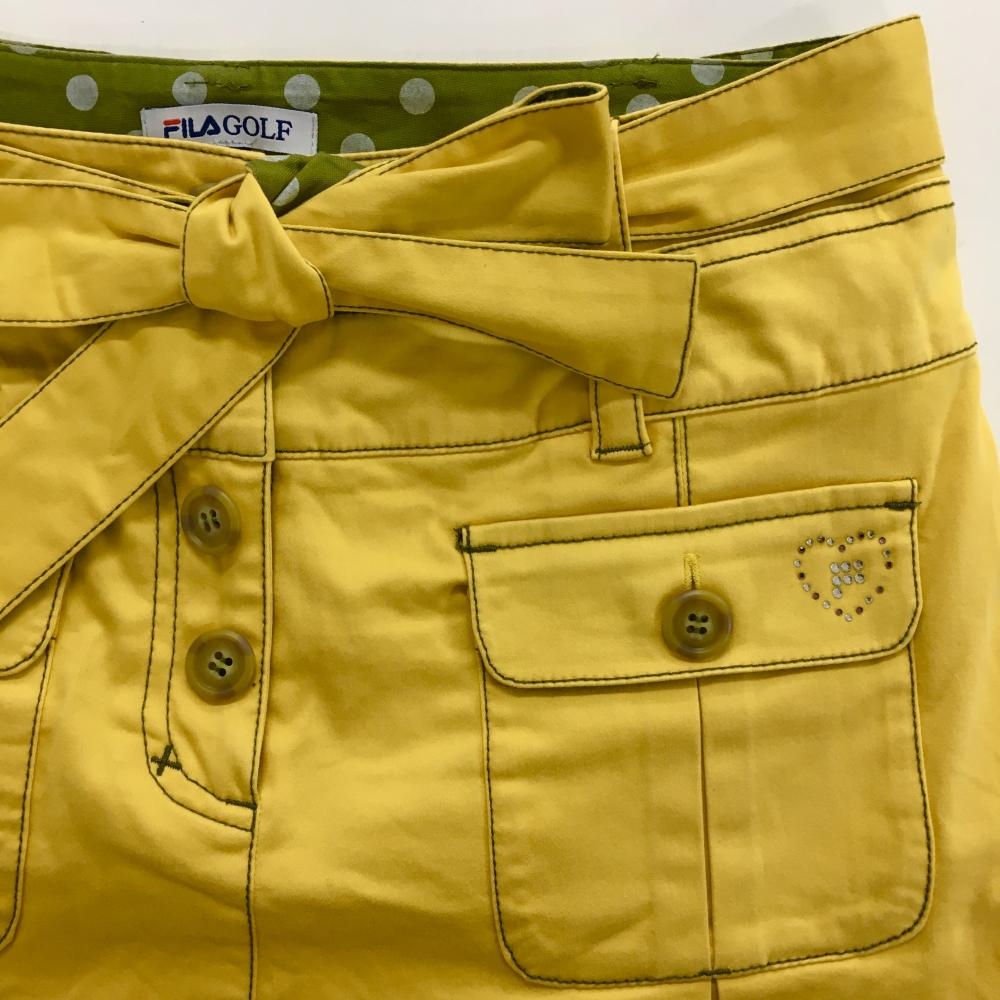 フィラゴルフ スカート イエロー×カーキ フラップポケット インナーパンツ・共布ベルト付 レディース M ゴルフウェア FILA GOLF