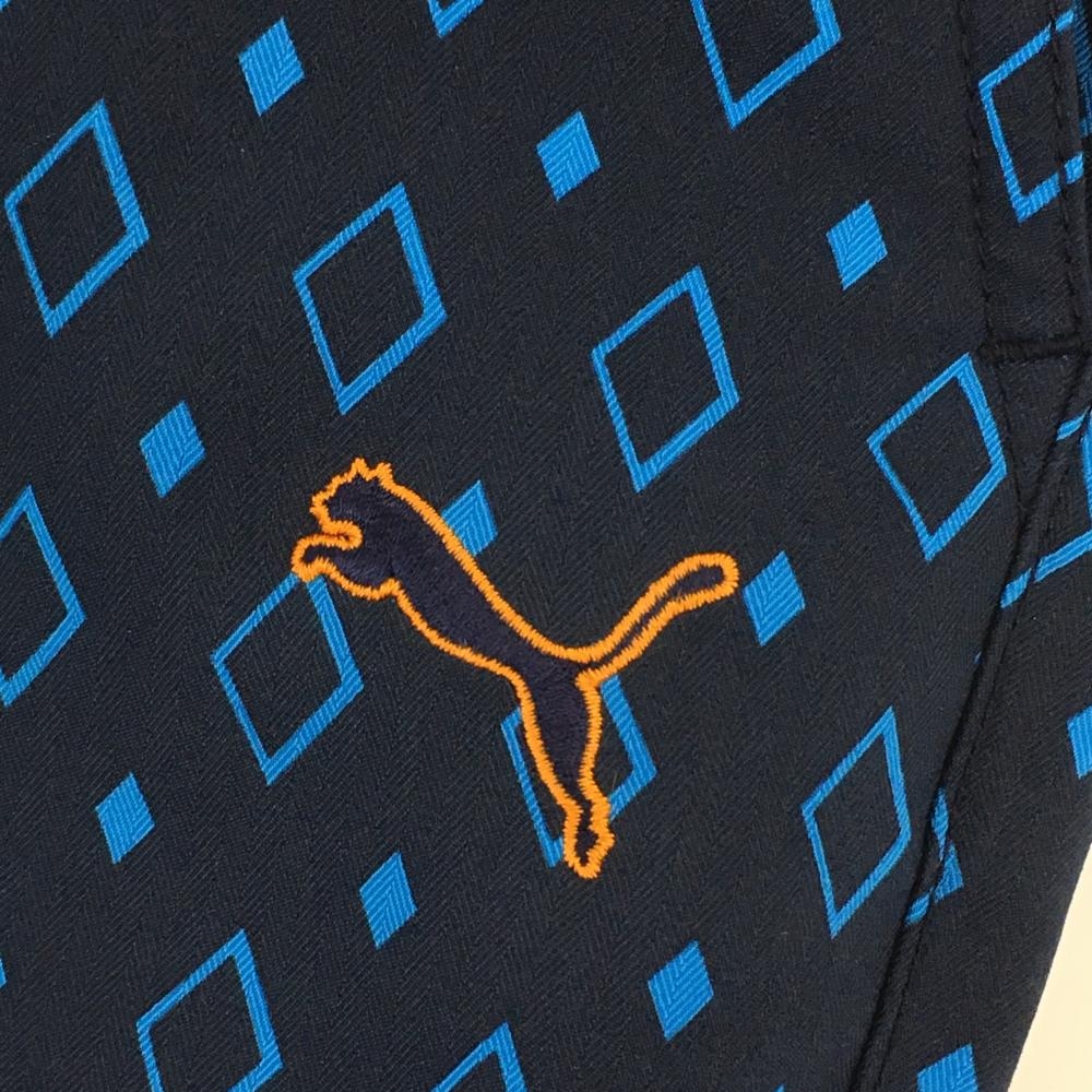 プーマ パンツ ダークネイビー×ブルー ダイヤ柄 ストレッチ メンズ ゴルフウェア PUMA
