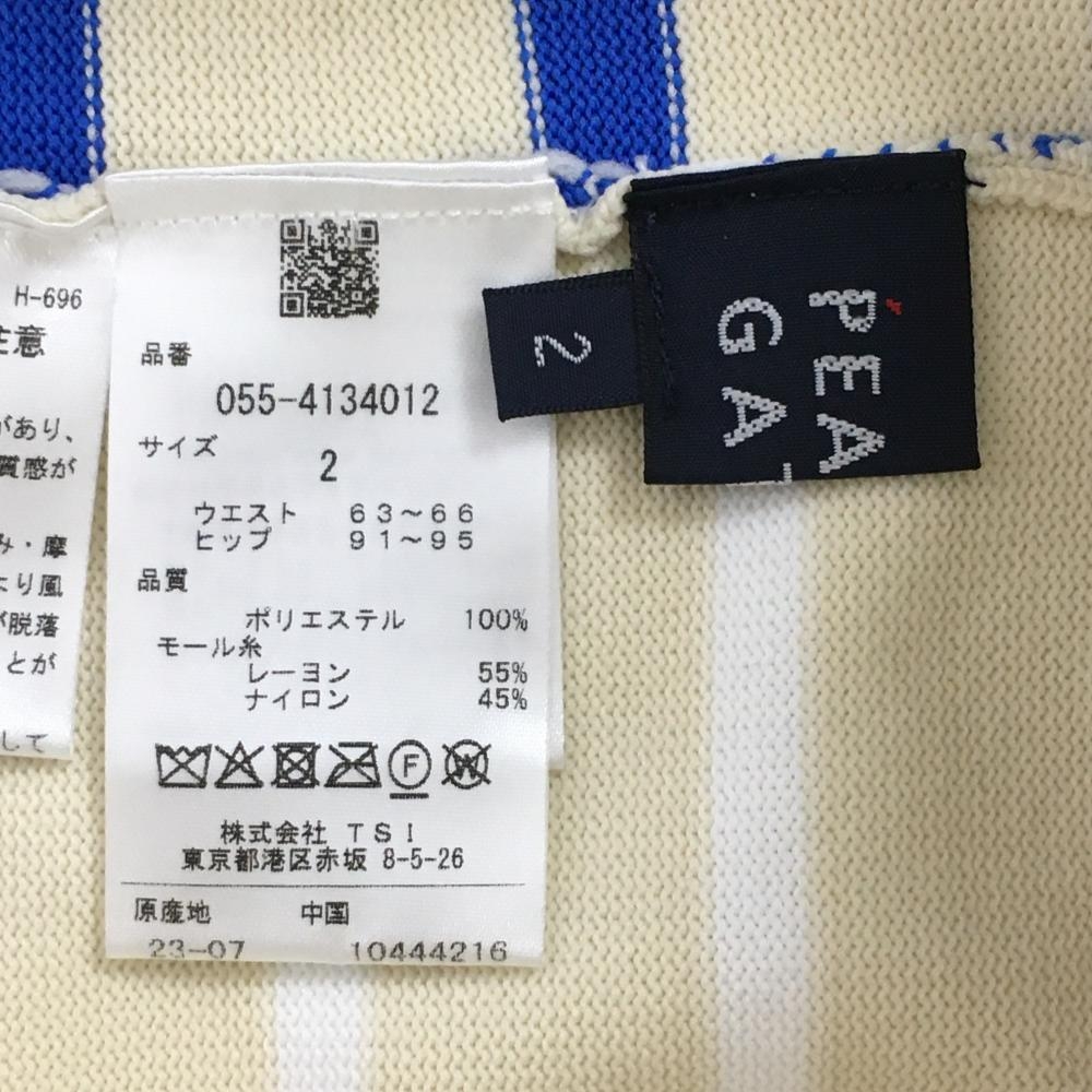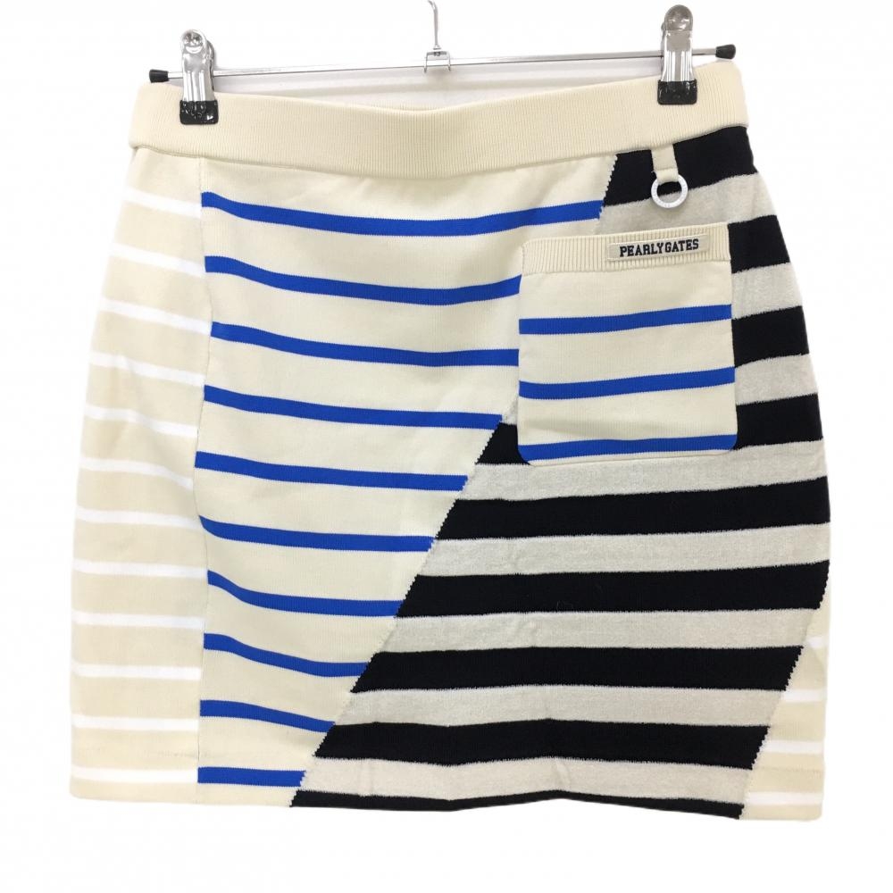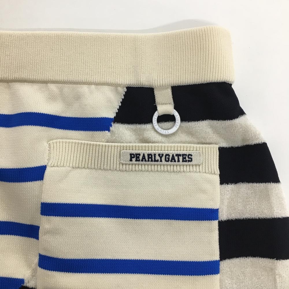 【超美品】パーリーゲイツ ニットスカート ライトベージュ×ブルー ボーダー レディース 2(L) ゴルフウェア 2023年モデル PEARLY GATES