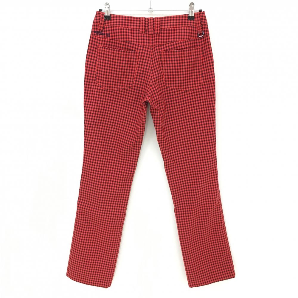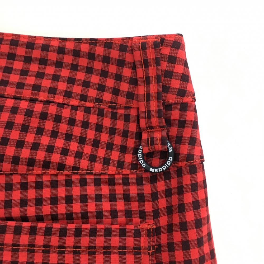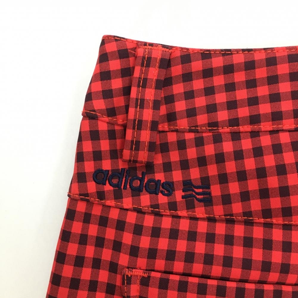 【超美品】アディダス パンツ レッド×ダークネイビー ギンガムチェック 裏起毛 レディース L/G ゴルフウェア adidas