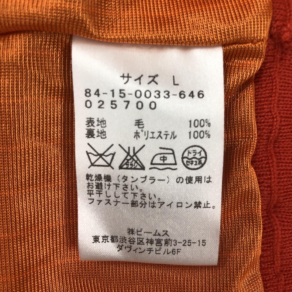 【超美品】ビームスゴルフ ハイネックセーター レッド 蓄熱裏地 ウール100% ハーフジップ メンズ L ゴルフウェア BEAMS GOLF