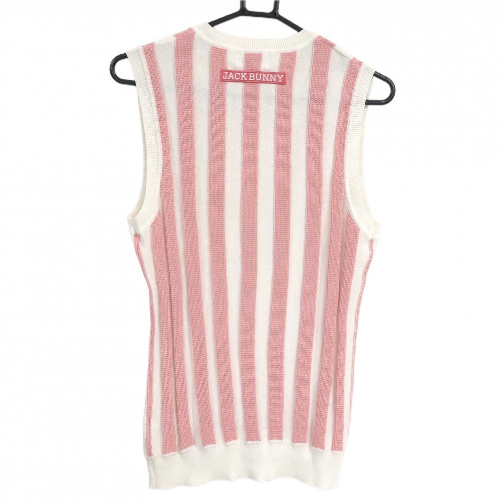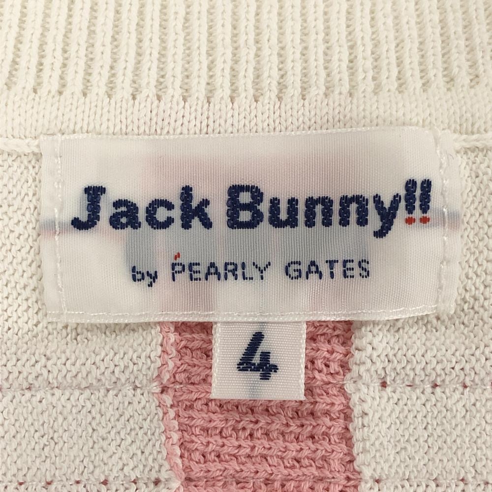 【超美品】ジャックバニー ニットベスト 白×ピンク ストライプ コットン混 メンズ 4(M) ゴルフウェア Jack Bunny
