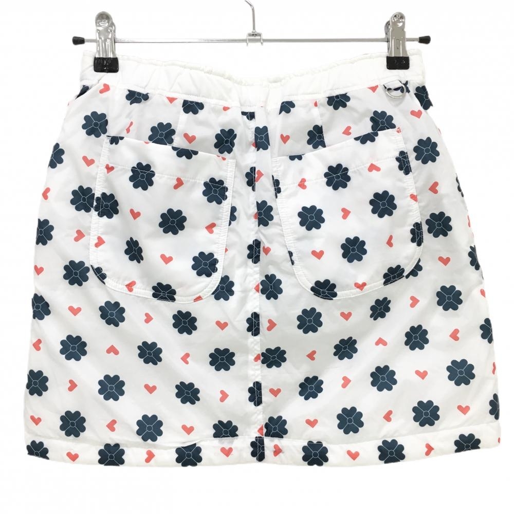 ビバハート 中綿リバーシブルスカート 白×ネイビー系 花柄 ハート柄 レディース 38(S) ゴルフウェア VIVA HEART