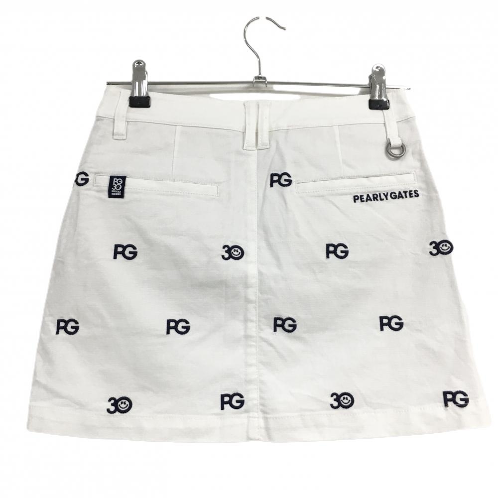 パーリーゲイツ スカート 白×ネイビー ロゴ刺しゅう総柄 30周年 レディース 0(S) ゴルフウェア PEARLY GATES