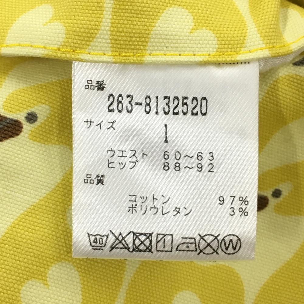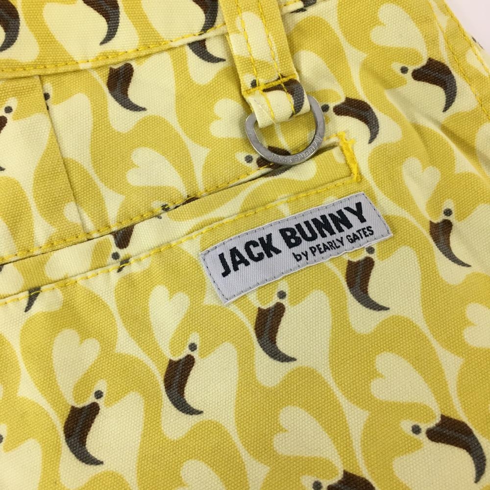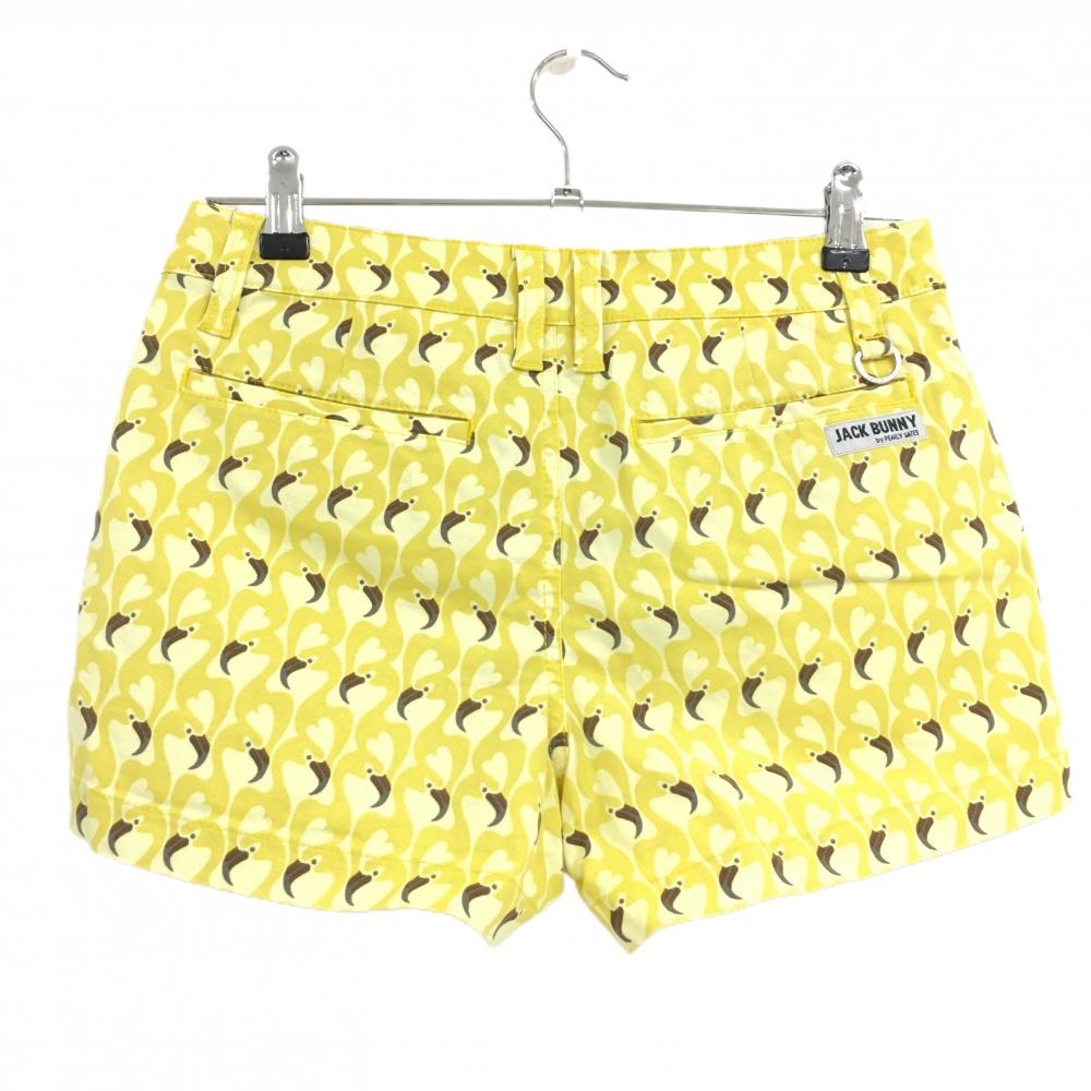 【美品】ジャックバニー ショートパンツ イエロー×ブラウン フラミンゴ柄 レディース 1(M) ゴルフウェア Jack Bunny