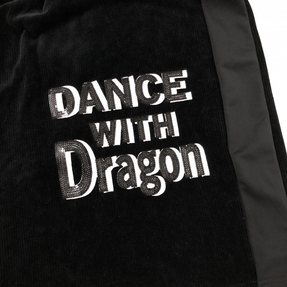【美品】ダンスウィズドラゴン コーデュロイワンピース 黒 ハイネック スパンコールロゴ レディース 2(M) ゴルフウェア Dance With Dragon