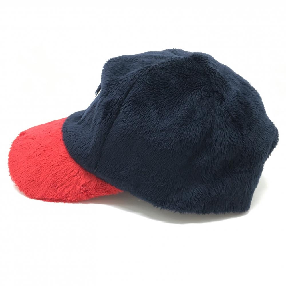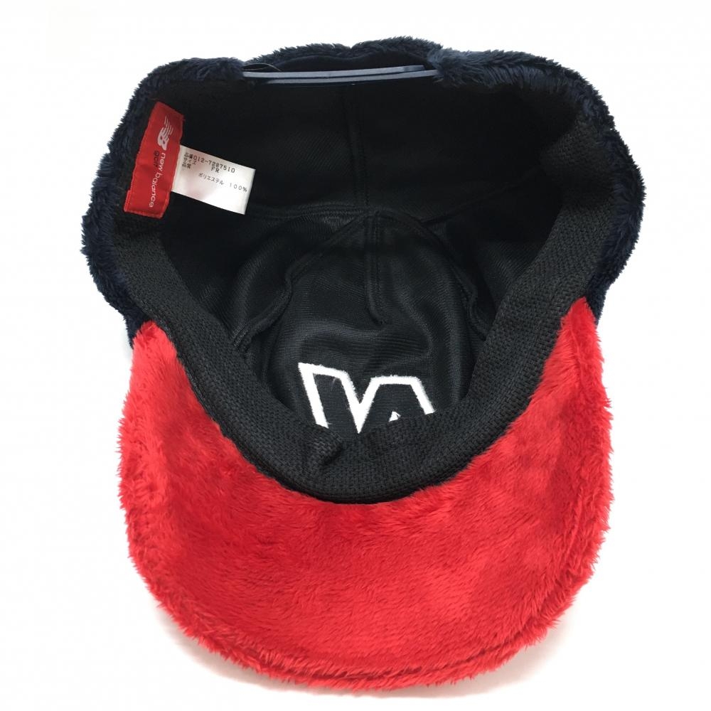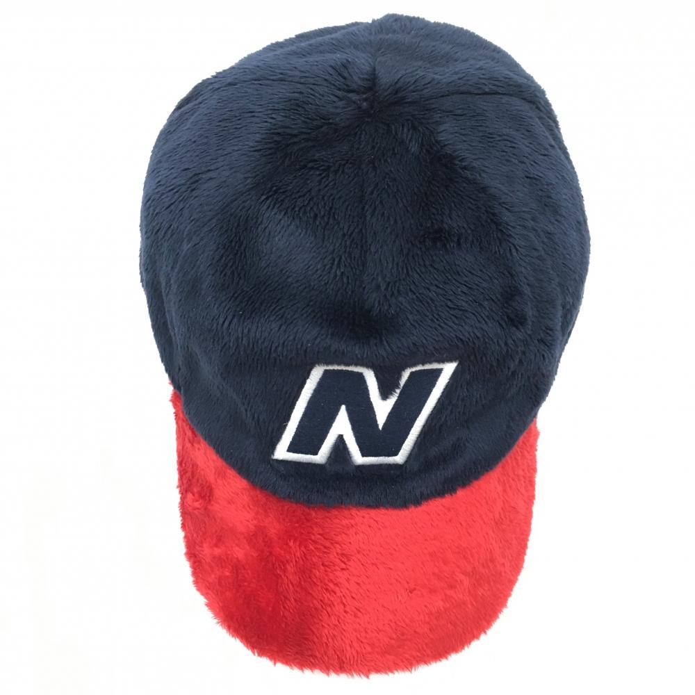 【美品】ニューバランスゴルフ キャップ ネイビー×レッド ファー素材 ロゴワッペン FR ゴルフウェア New Balance