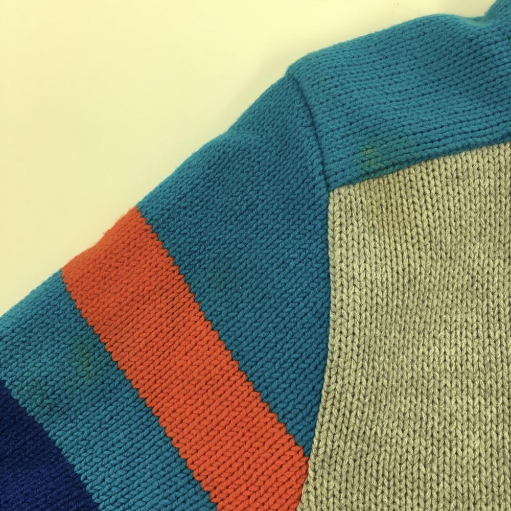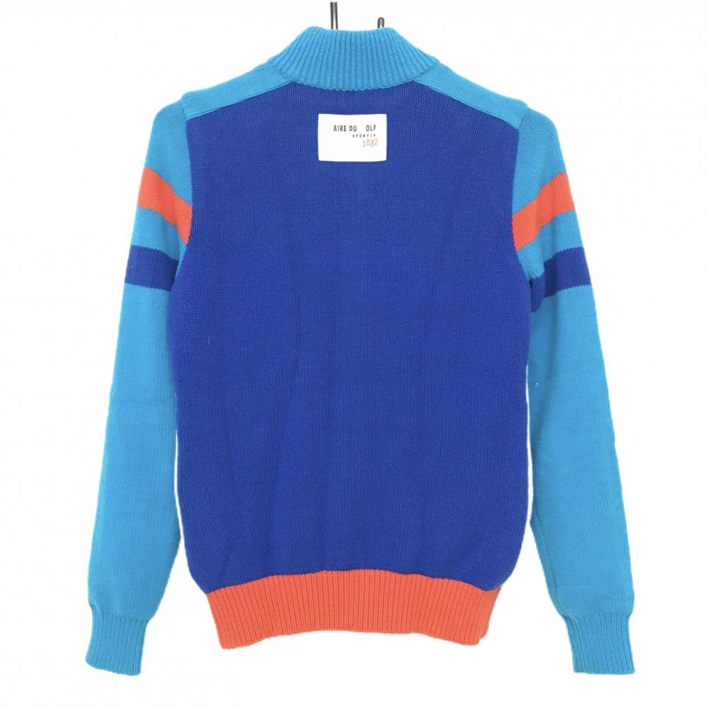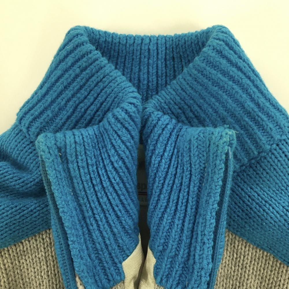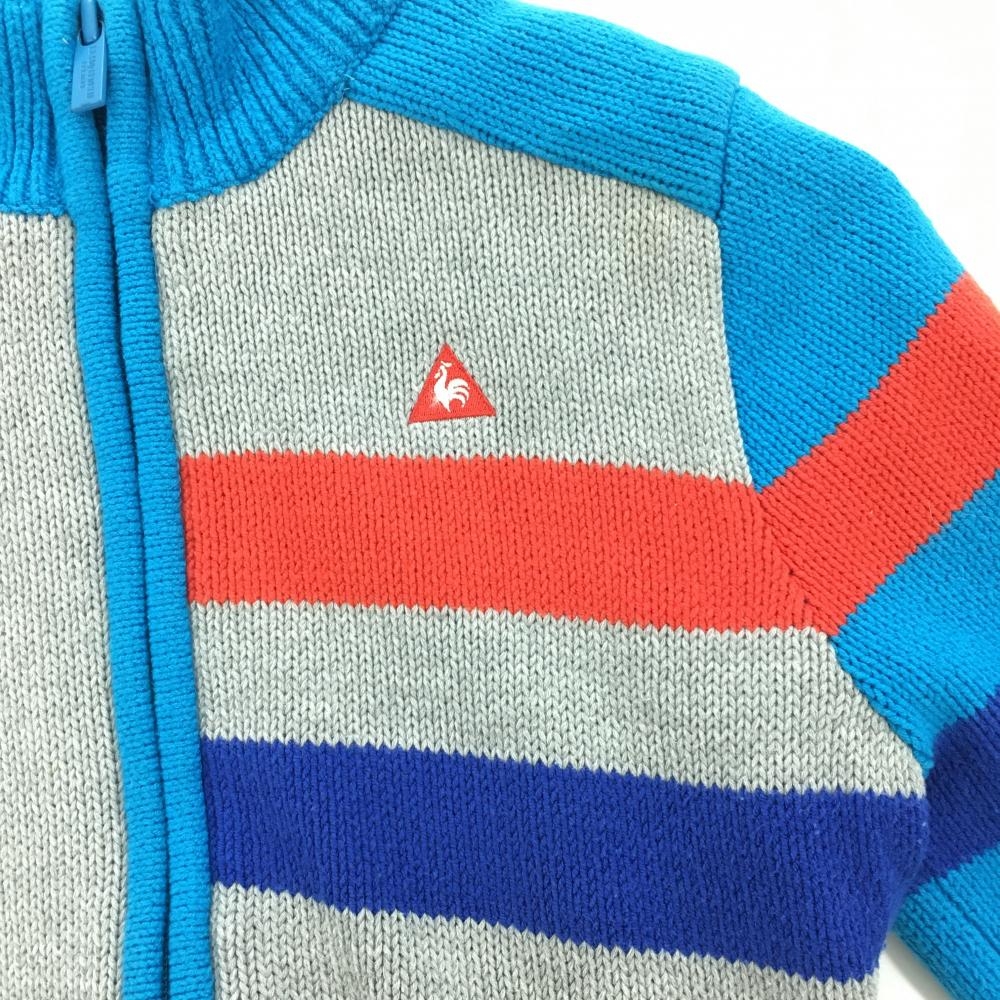 ルコック ニットジャケット グレー×ブルー 袖ライン 韓国モデル レディース XS ゴルフウェア le coq sportif