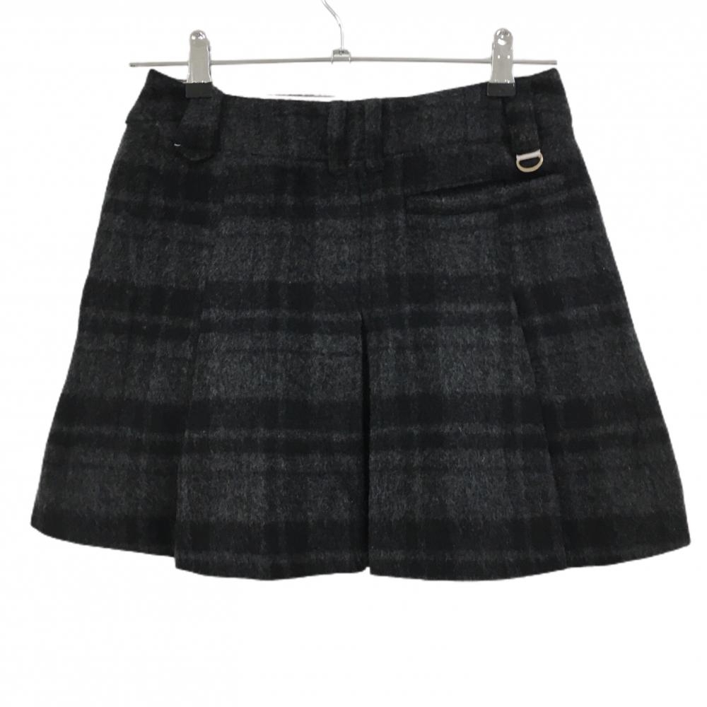 【超美品】サマンサタバサ スカート グレー×黒 チェック ウール混 ボックスプリーツ レディース 36(S) ゴルフウェア Samantha Thavasa