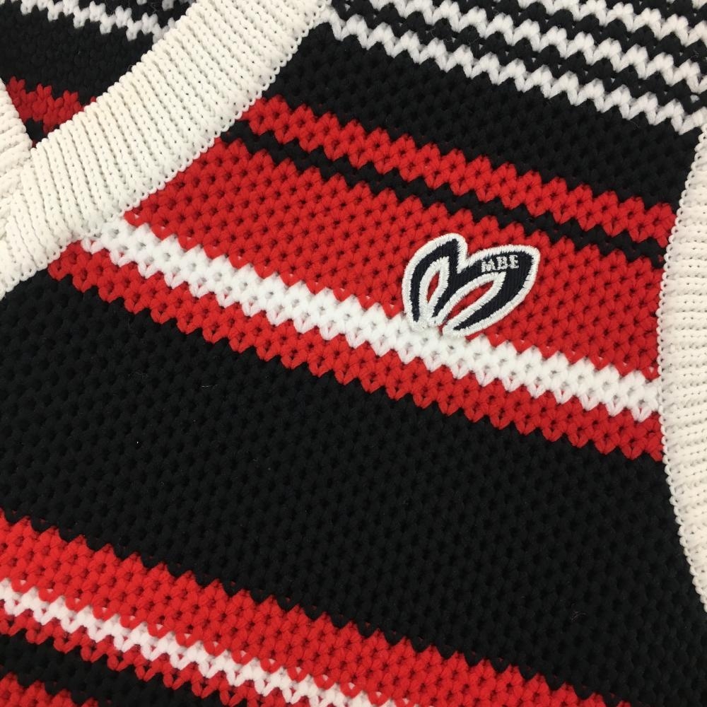 マスターバニー ニットベスト レッド×ネイビー ボーダー レディース 1(M) ゴルフウェア MASTER BUNNY EDITION