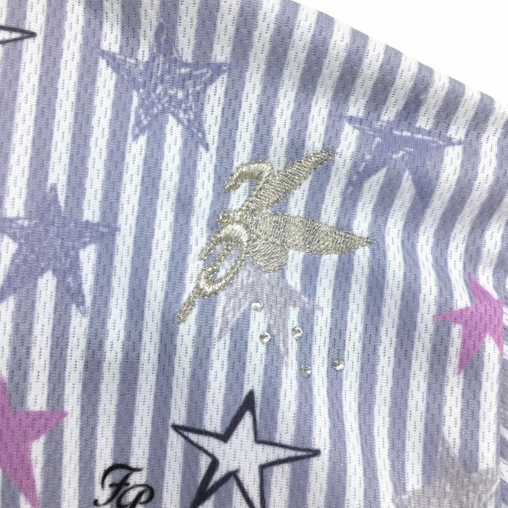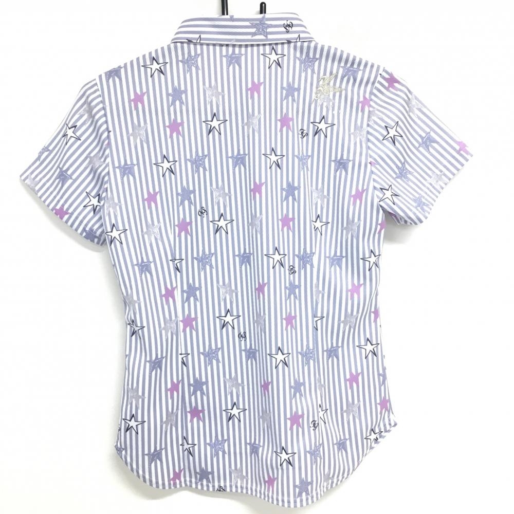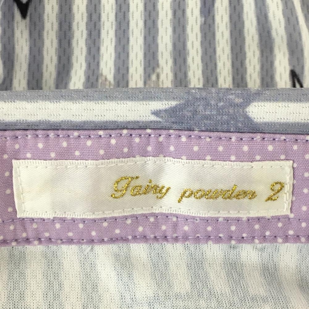 【超美品】フェアリーパウダー 半袖ポロシャツ グレー×白 ストライプ 星柄 レディース 2(M) ゴルフウェア FAIRY POWDER