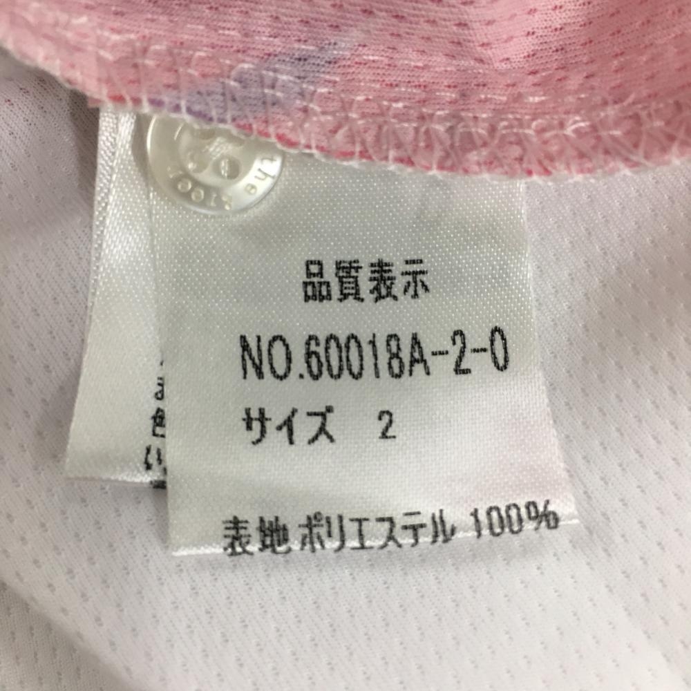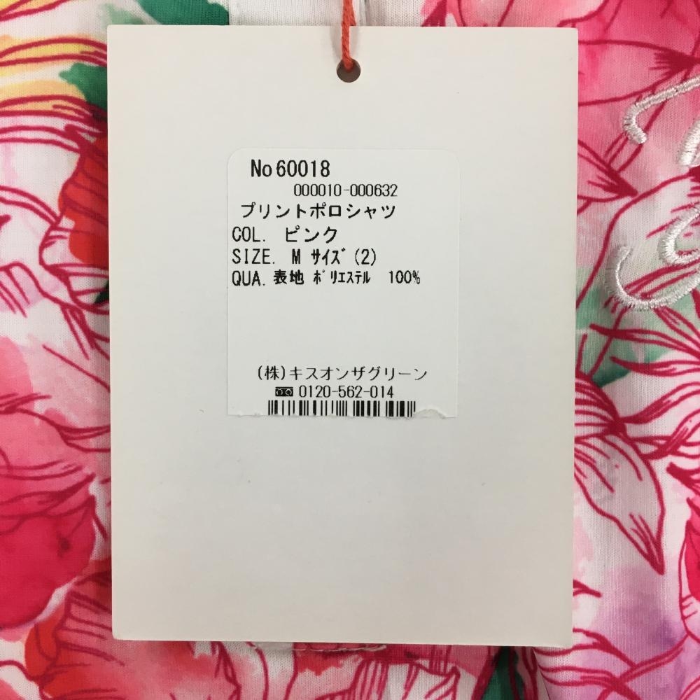 キスオンザグリーン 半袖ポロシャツ 白×ピンク 前身頃花柄 紙タグ付き レディース 2(M) ゴルフウェア kiss on the green
