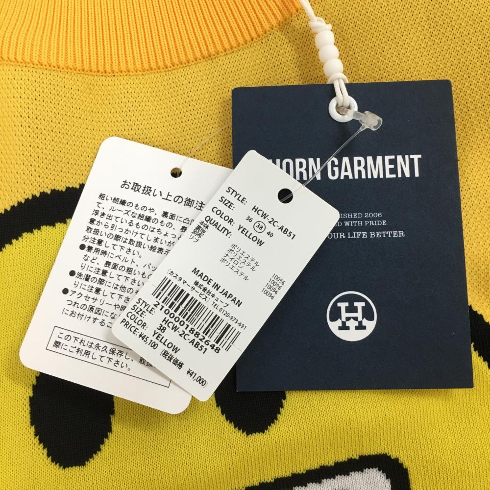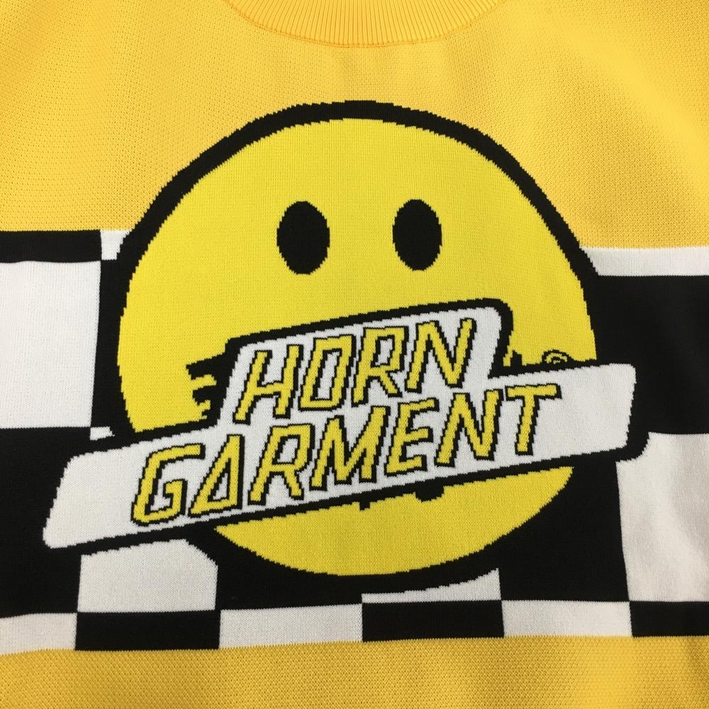 【新品】ホーンガーメント セーター イエロー×黒 一部ブロック柄 スマイル マークアンドロナ レディース 38(M) ゴルフウェア MARK&LONA