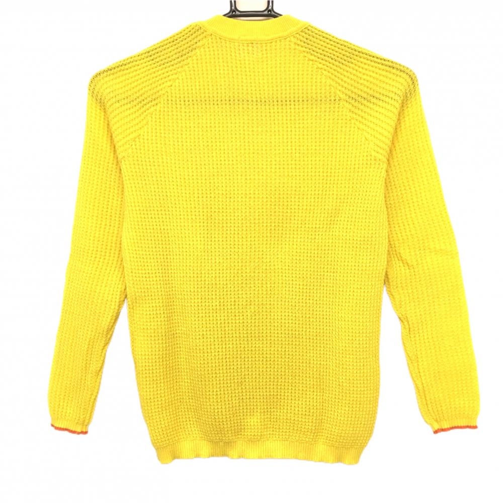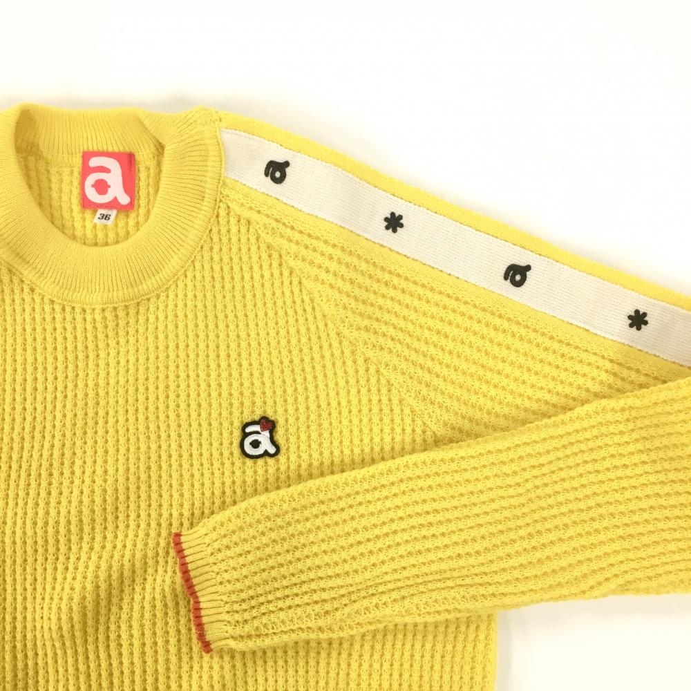 【超美品】アルチビオ セーター イエロー×白 袖ライン ロゴ ニット ウール混 レディース 36(S) ゴルフウェア archivio