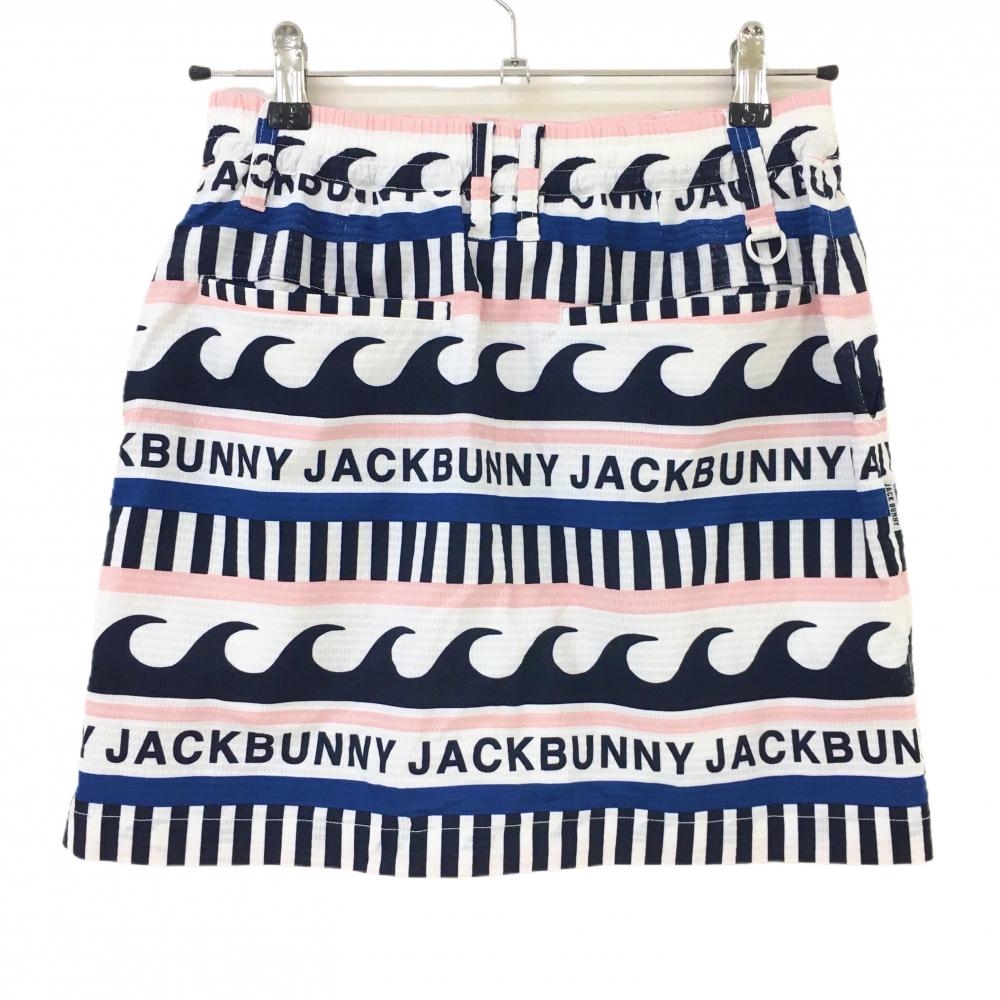 ジャックバニー スカート 白×ピンク×ネイビー マリンボーダー 一部ストライプ レディース 1(M) ゴルフウェア 2024年モデル Jack Bunny