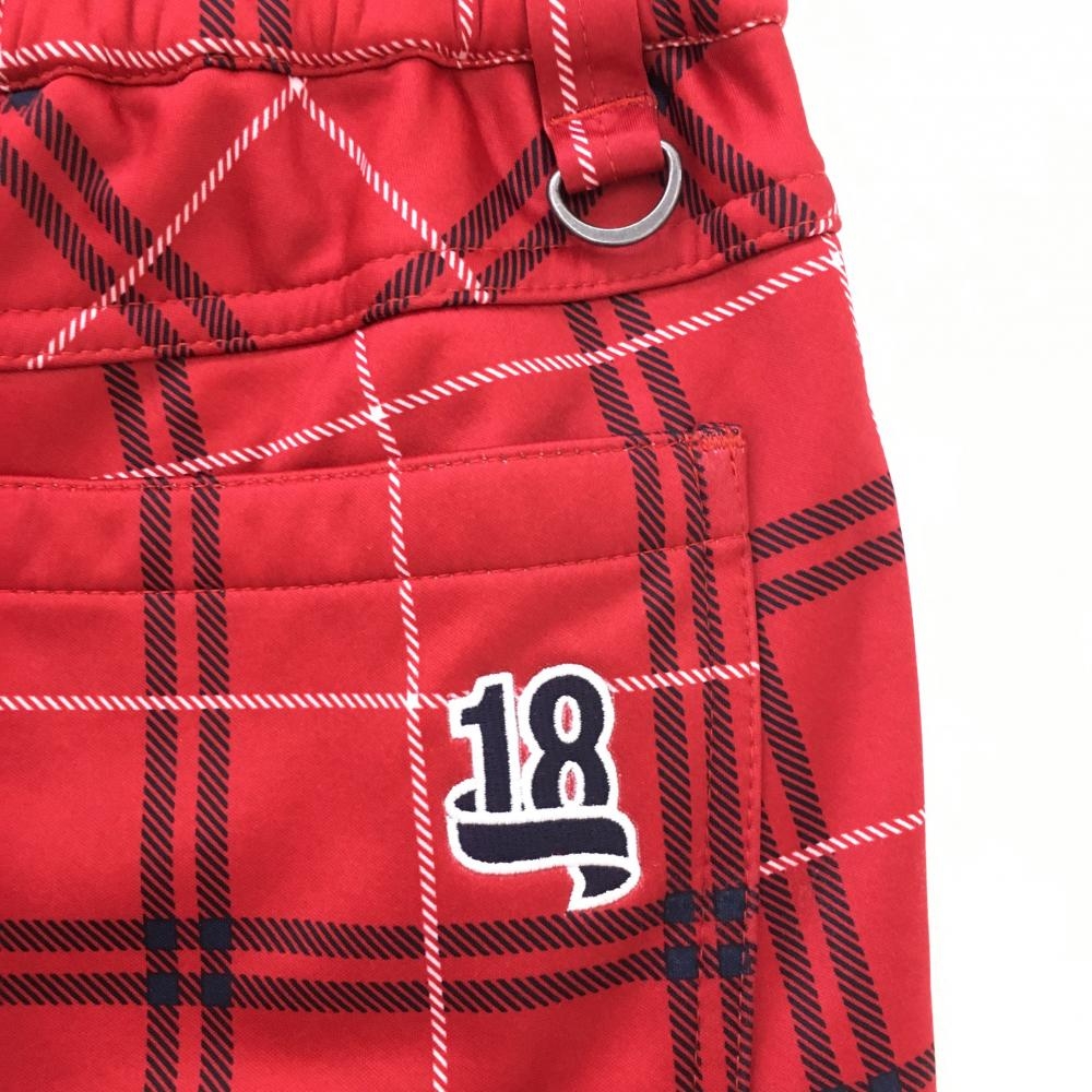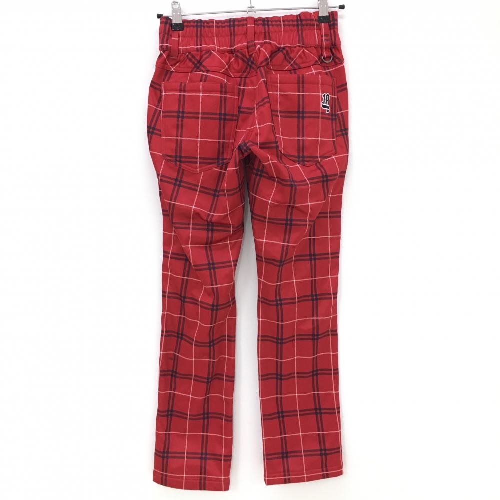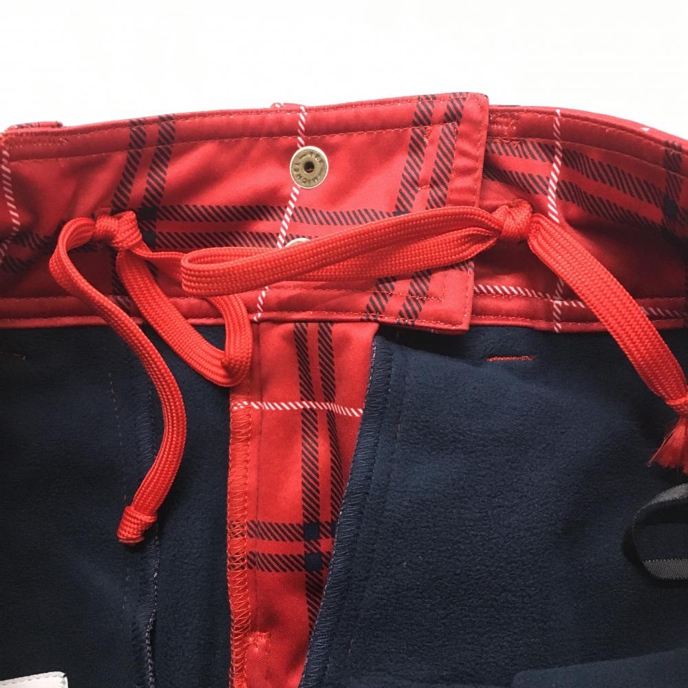 【超美品】フィラゴルフ パンツ レッド×ネイビー チェック柄 ロゴ刺しゅう 裏起毛 レディース S ゴルフウェア FILA GOLF