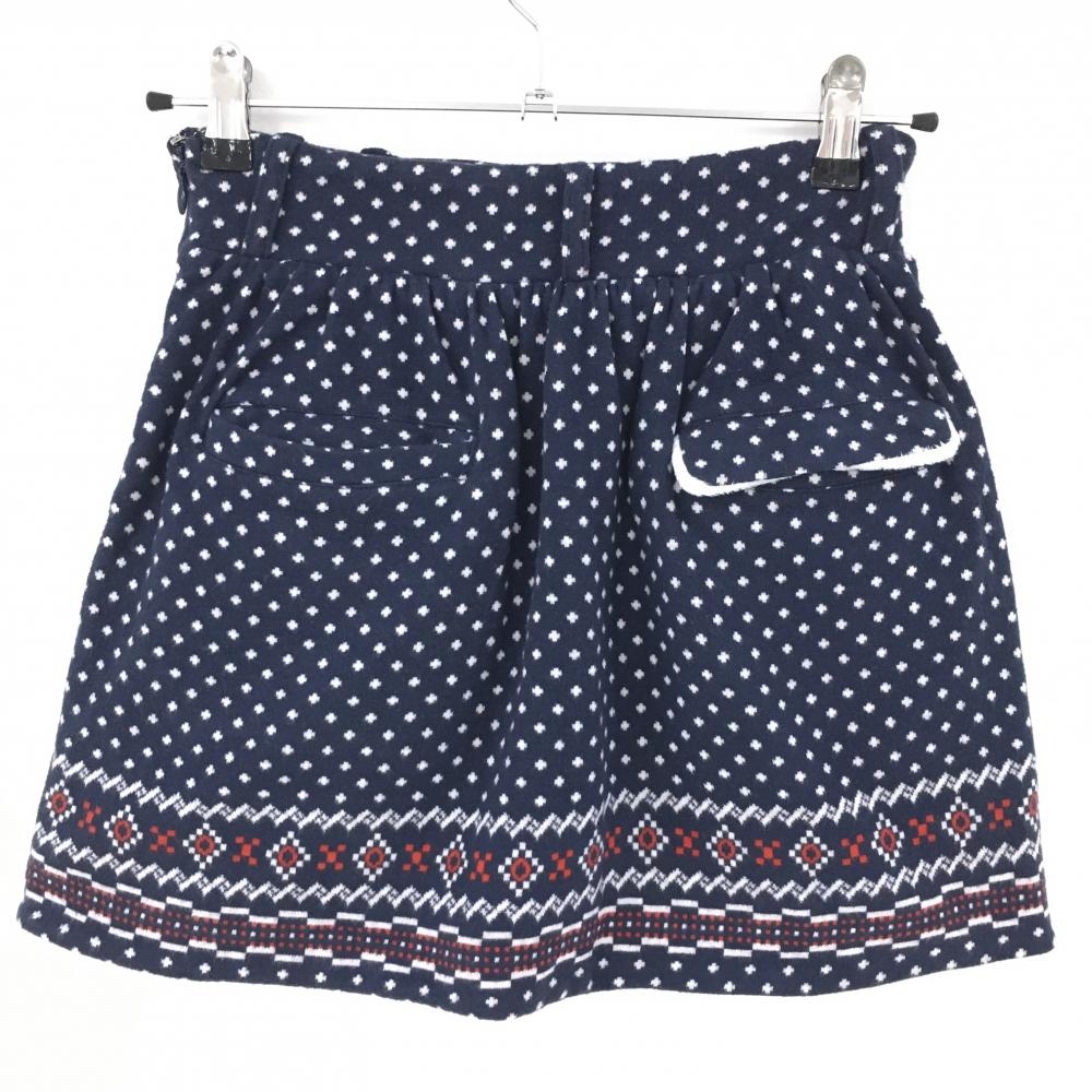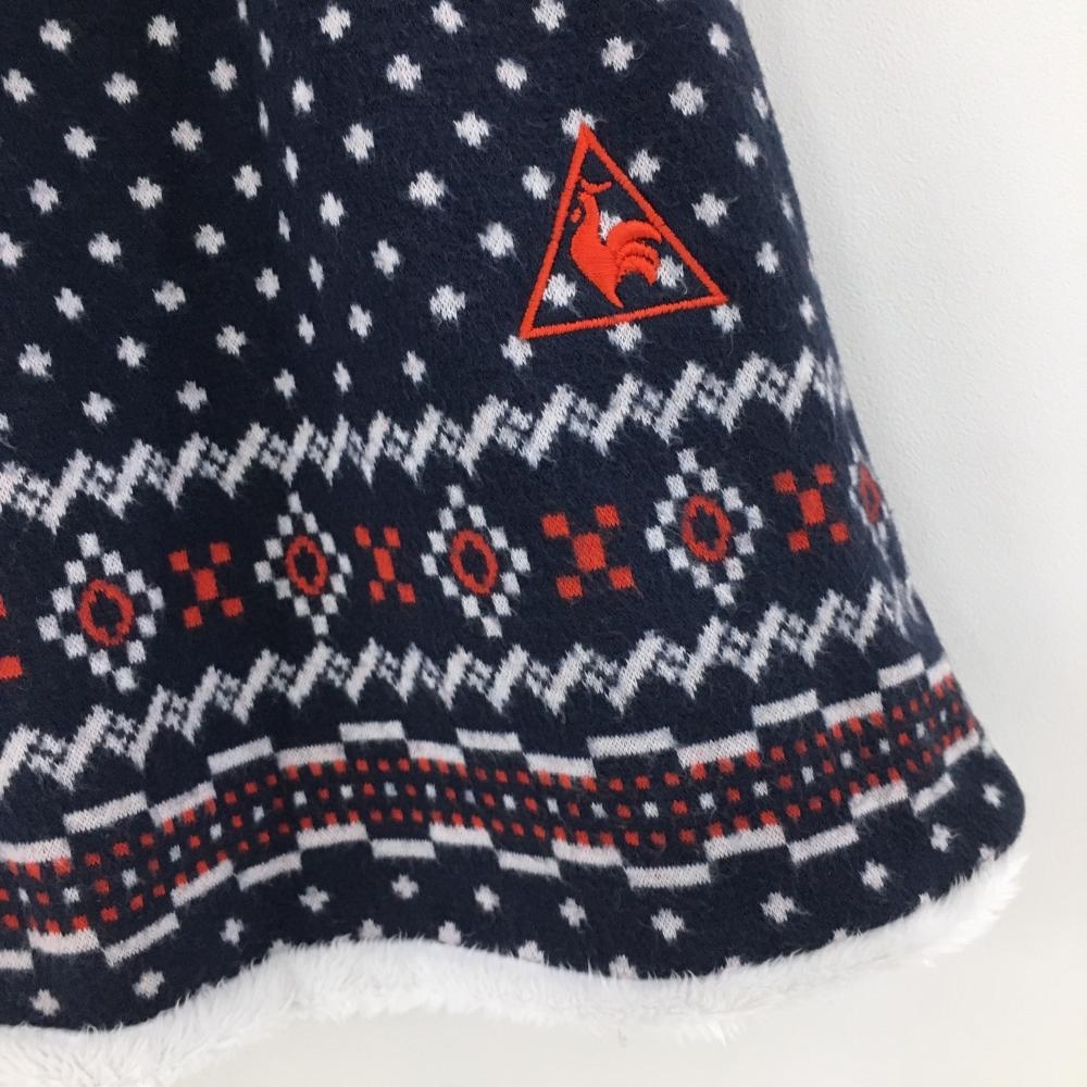 【美品】ルコック スカート ネイビー×白 総柄 ロゴ刺しゅう 裏起毛 サイドジップ レディース 7 ゴルフウェア le coq sportif