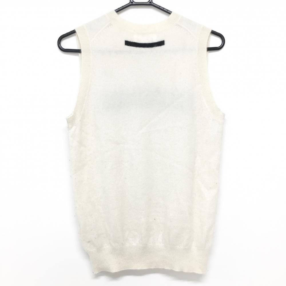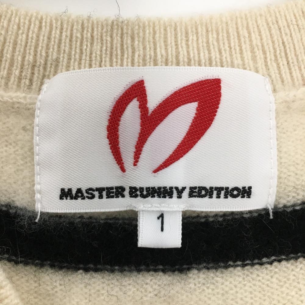 マスターバニー ニットベスト アイボリー×黒 カシミヤ100% Vネック レディース 1(M) ゴルフウェア MASTER BUNNY EDITION