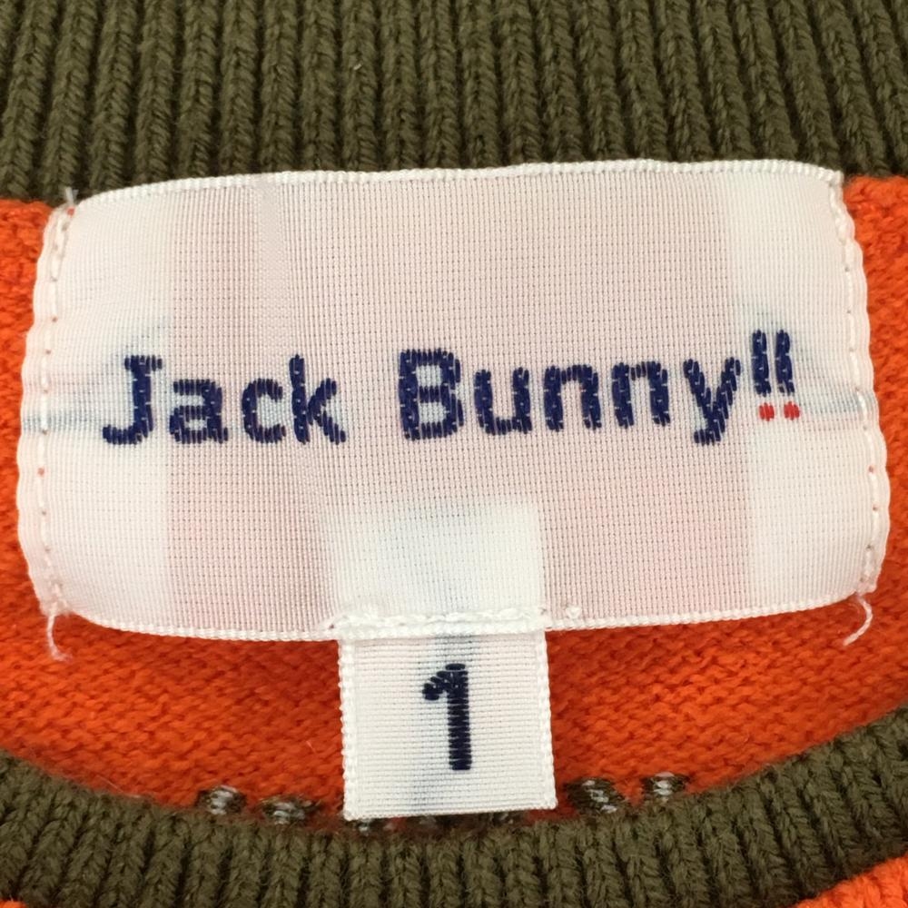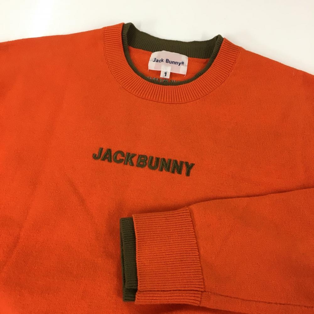 【美品】ジャックバニー セーター オレンジ×カーキ フロントロゴ ニット レディース 1(M) ゴルフウェア 2022年モデル Jack Bunny